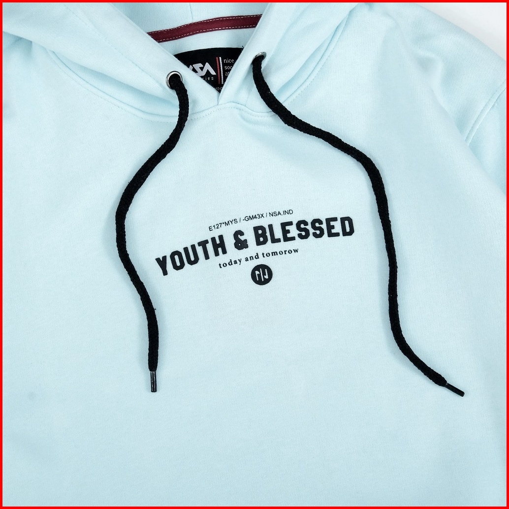 Nsa Ind Hoodie Youth Blessed Light Blue Pria Wanita Oversize