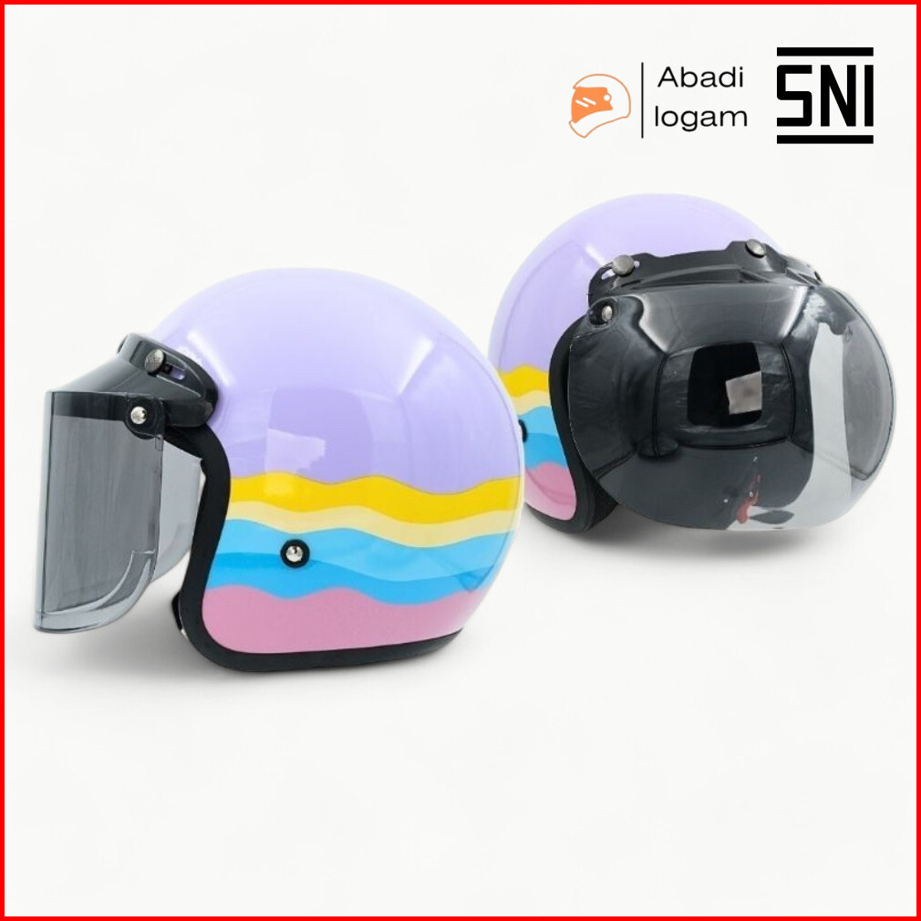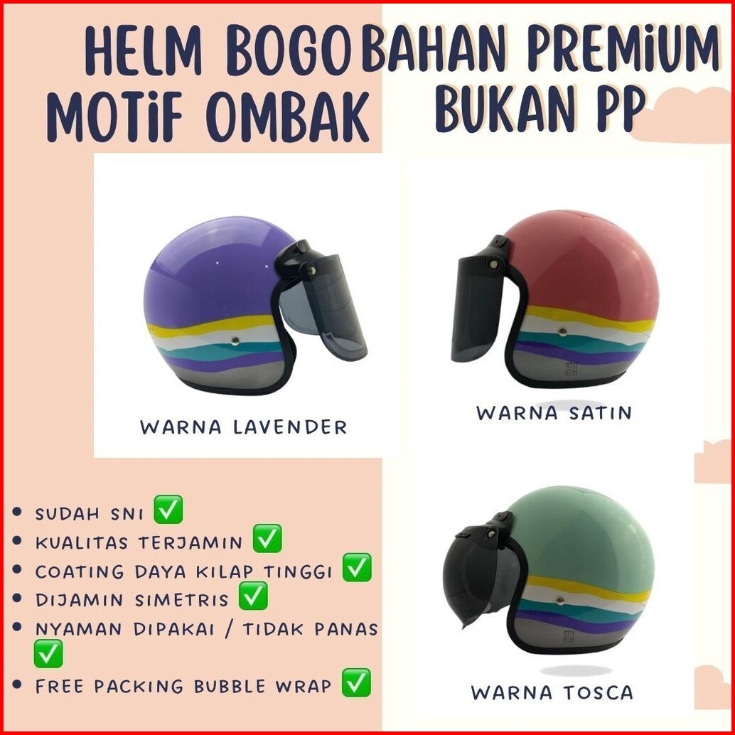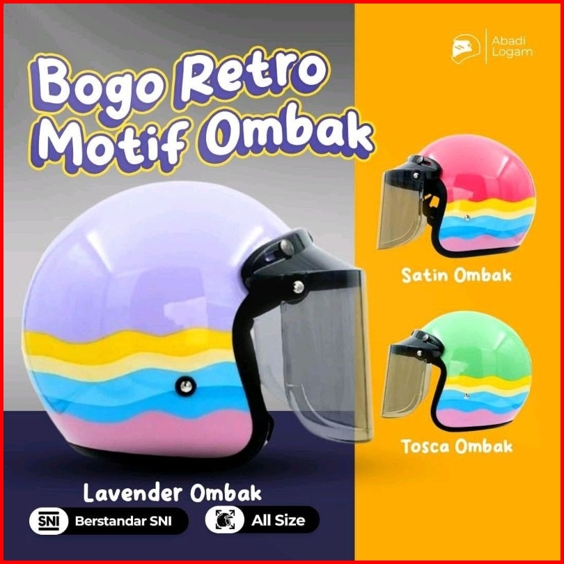 Helm Bogo Dewasa Retro Sni Klasik Motif Ombak - Tampil Stylish Aman