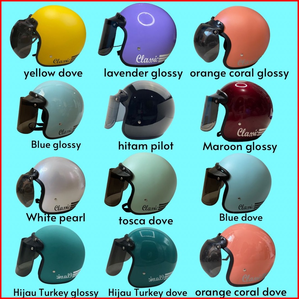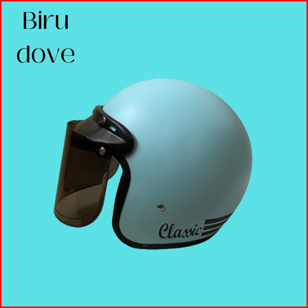 Helm Bogo Dewasa Classic Retro Wanita Pria Warna Terkini Sni Full Leher