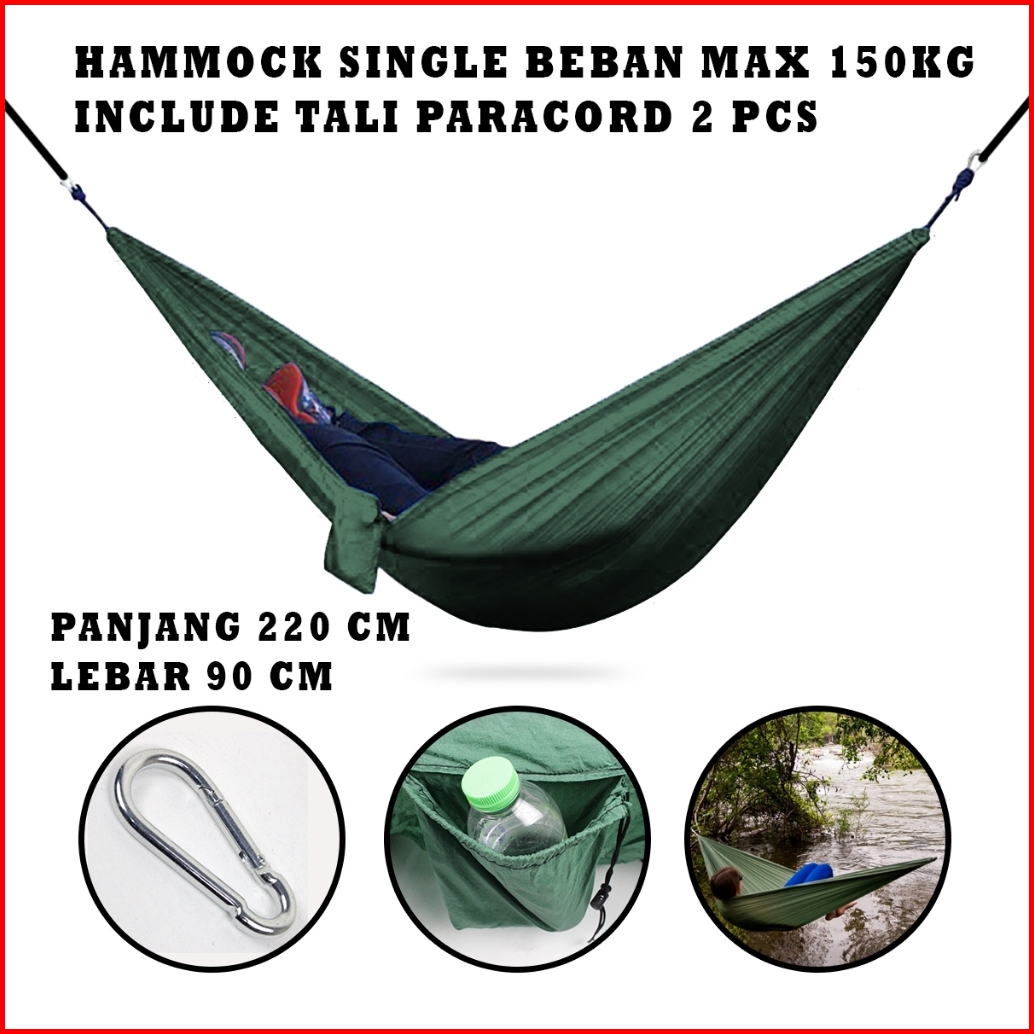 Hammock Single Ayunan Gantung Uk 90x220 Hammock Ayunan Camping Outdoor Polos Jc-1
