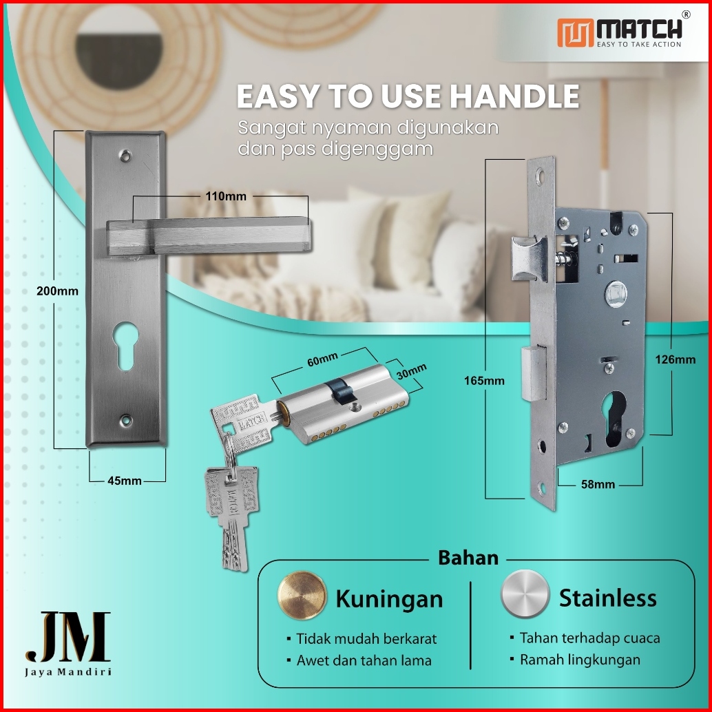 Match Kunci Pintu Satu Set Paket Komplit Ukuran Tanggung 20 Cm Kunci Handle Pintu Rumah Mm89 702
