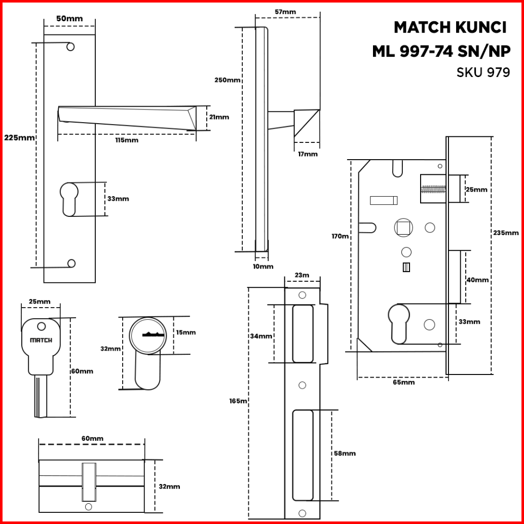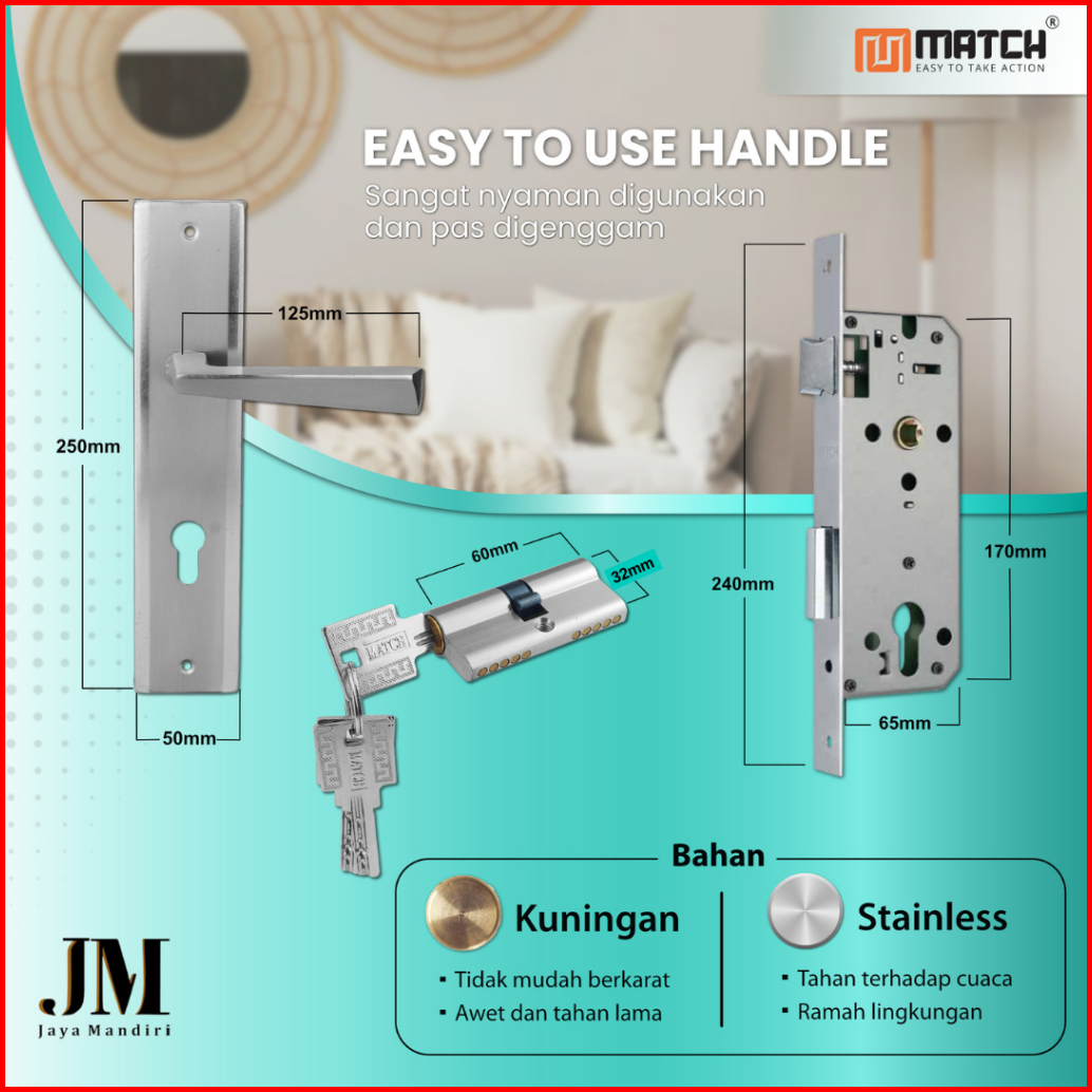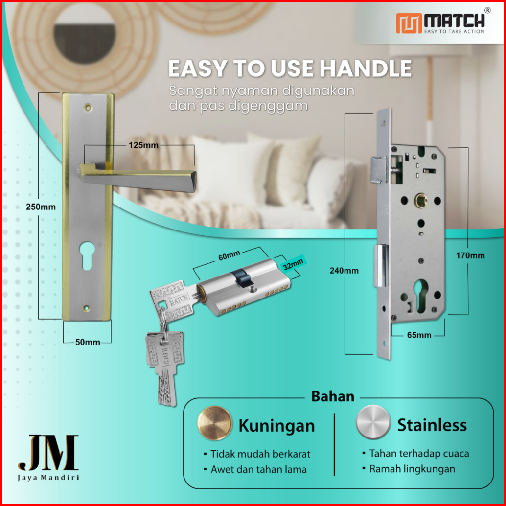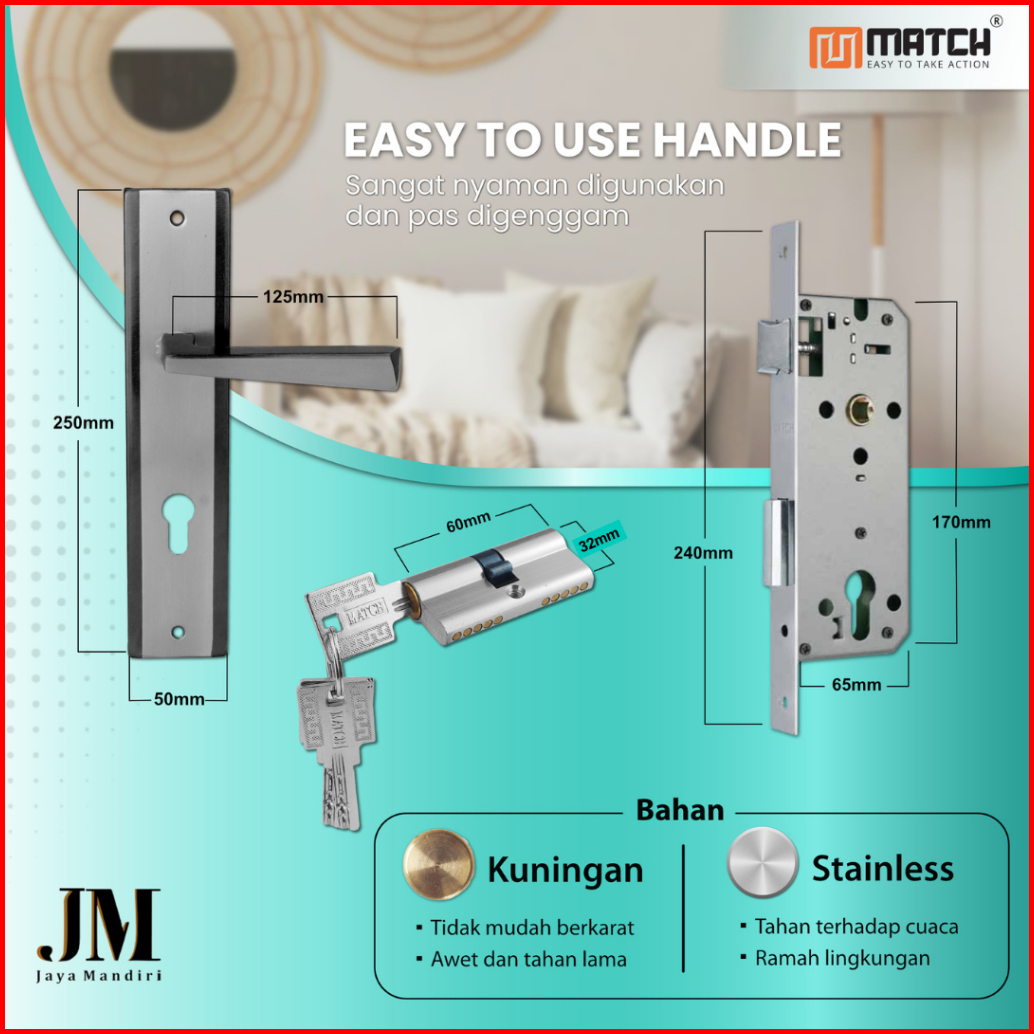Match Handle Kunci Pintu Rumah Besar 25cm Gagang Pintu Kamar Ml74 979 980 981
