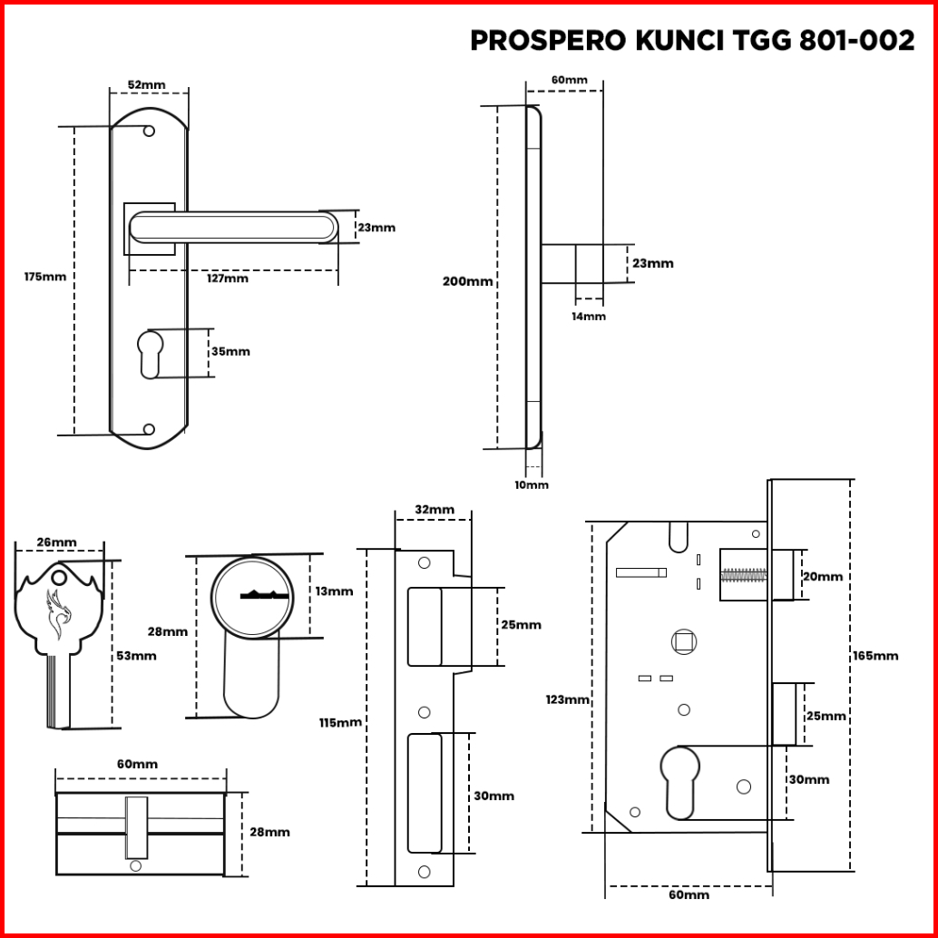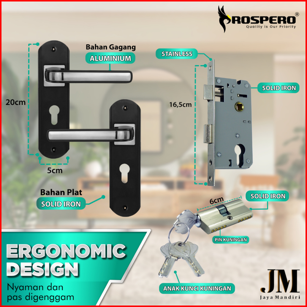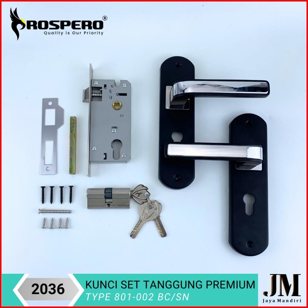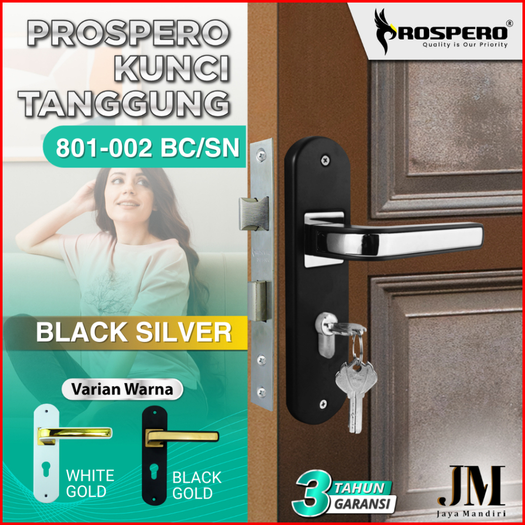 Prospero Handle Pintu Rumah Kunci Pintu Tanggung 20cm Black Silver 801-002 2036