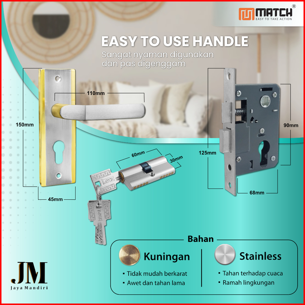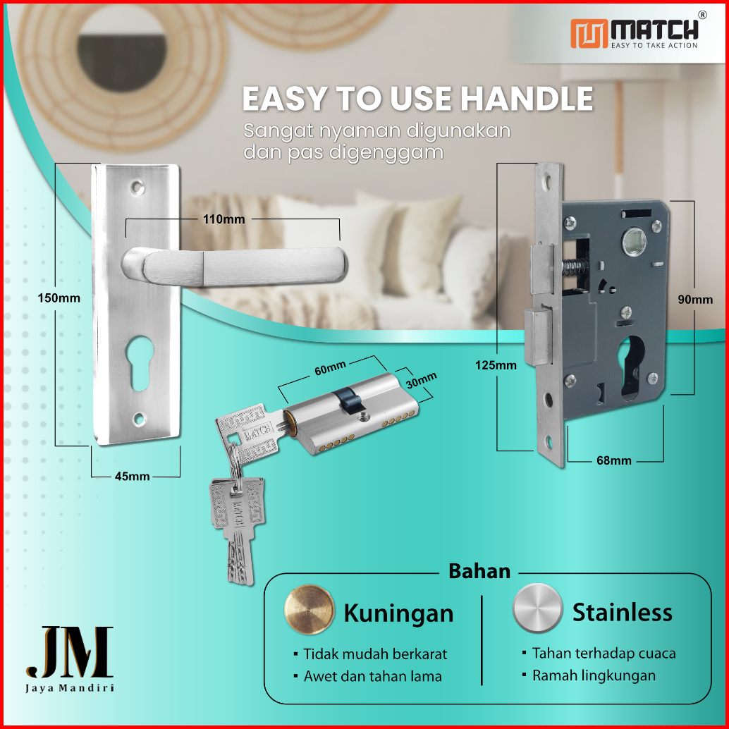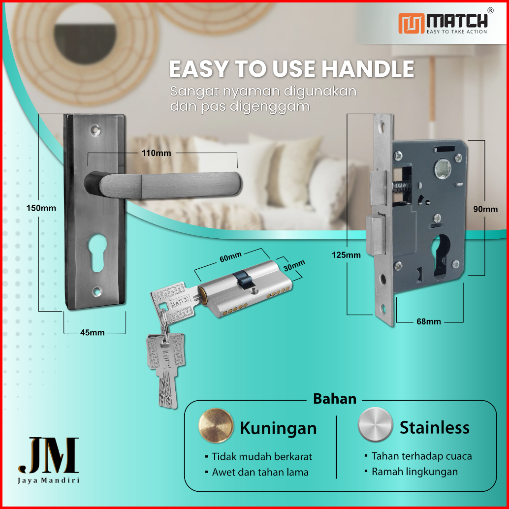 Match Kunci Pintu Rumah Tarikan Pintu Handle Paket Komplit Black Nikel Model Minimalis Ms99 704