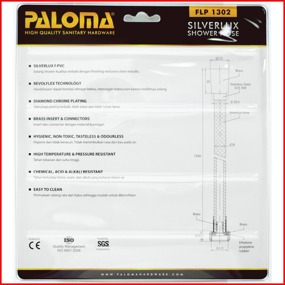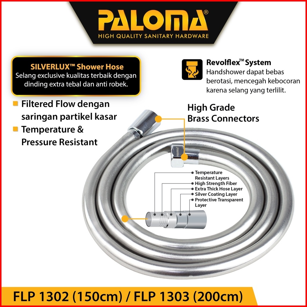 Paloma Silverlux Flexible Hose Selang Handshower Hand Shower Fleksibel Silver Flp 1302 1303 150cm 200cm