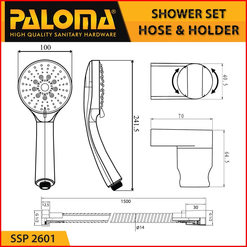 Paloma Ssp 2601 Shower Set Handshower Mandi Hand Shower Kepala Shower Head Air Paket