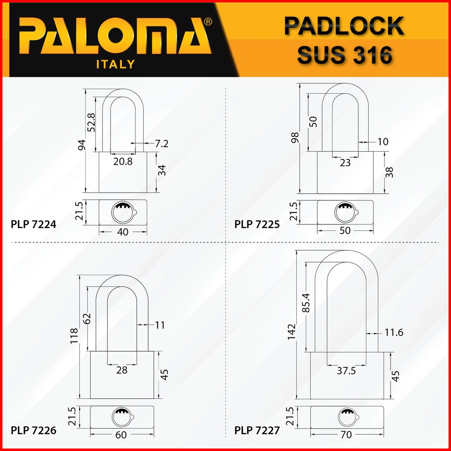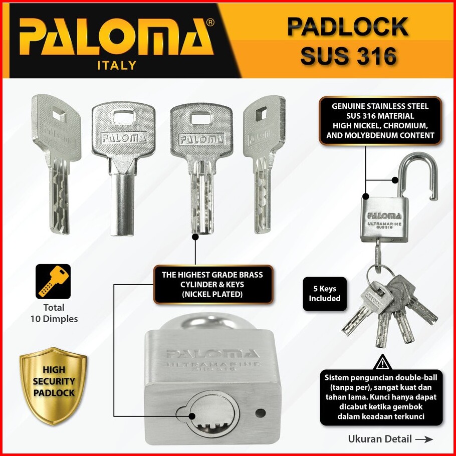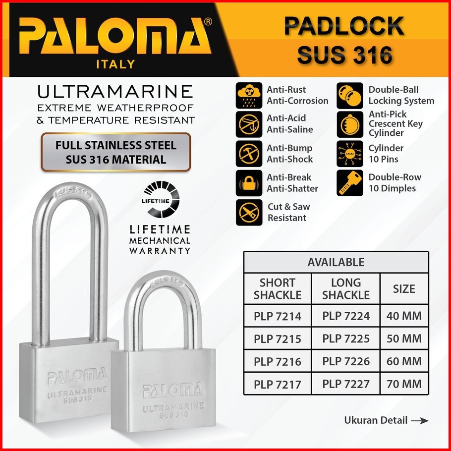 Paloma Gembok Stainless Sus 316 Leher Panjang Pendek Long Short Plp 72