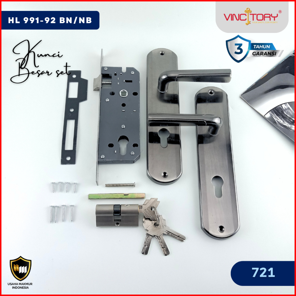 Vincitory Set Kunci Pintu Lengkap Handle Pintu Besar Stainless Black Garansi Hl991