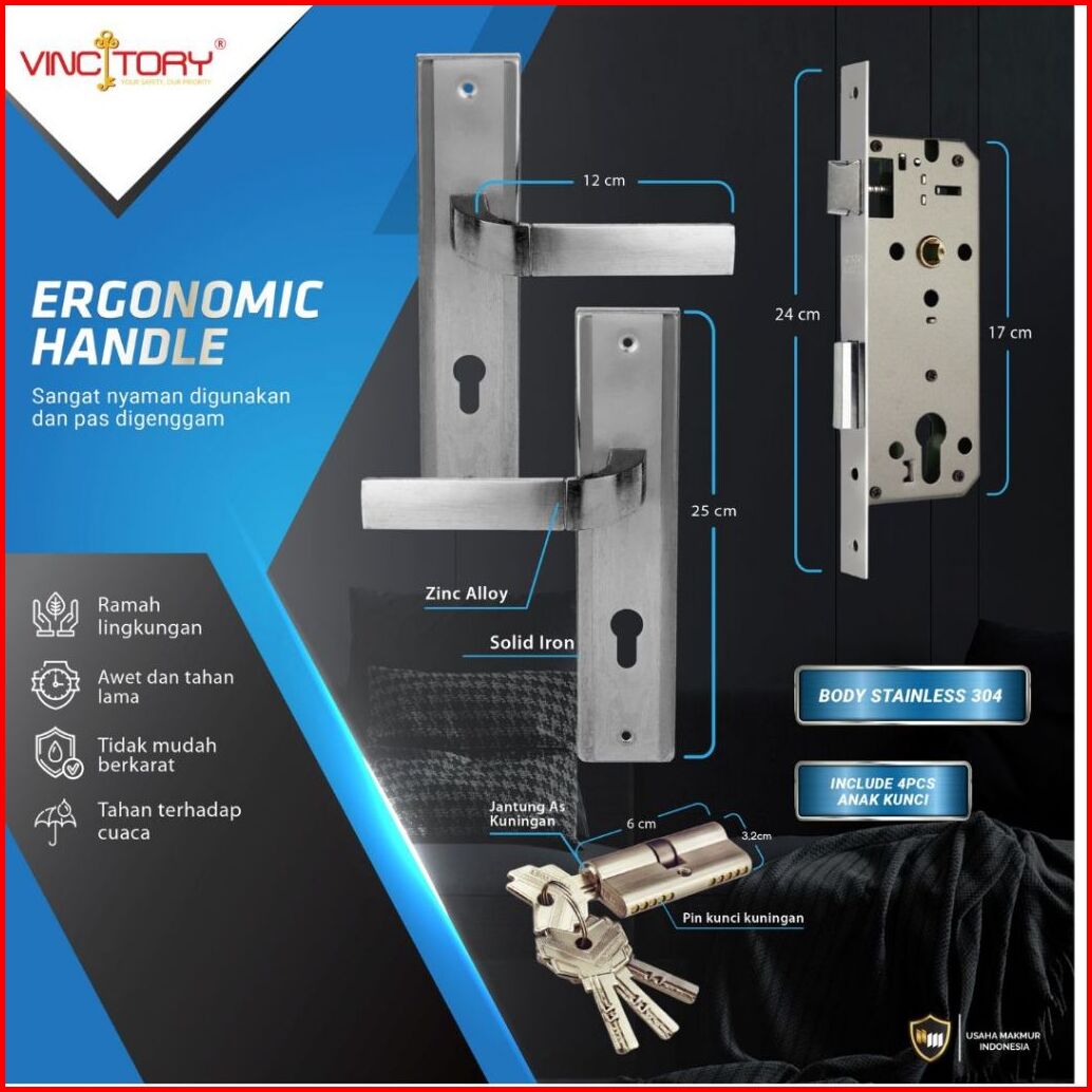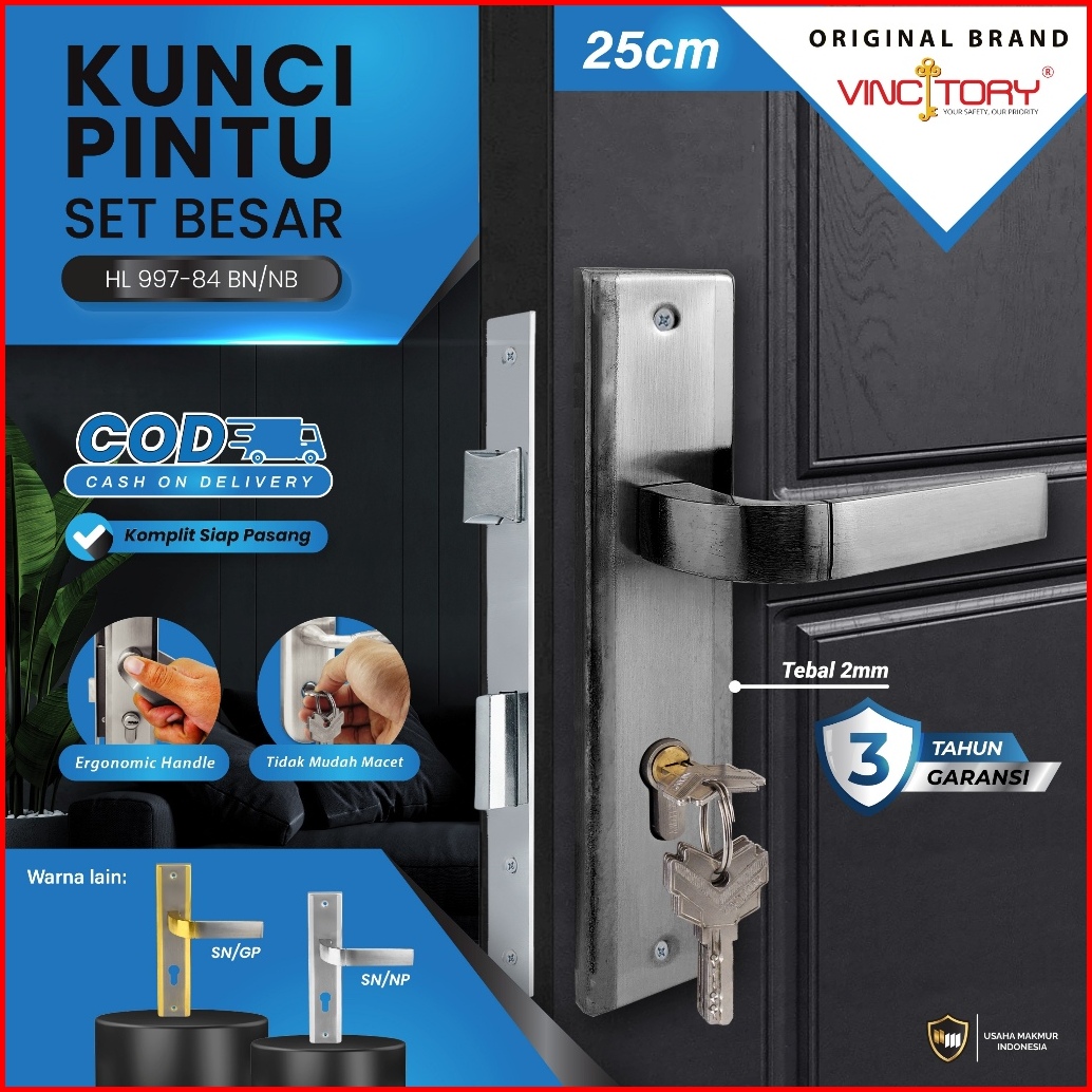 Vincitory Handle Kunci Pintu Rumah Besar 25cm Minimalis Garansi Full Set Body Kunci Hl997