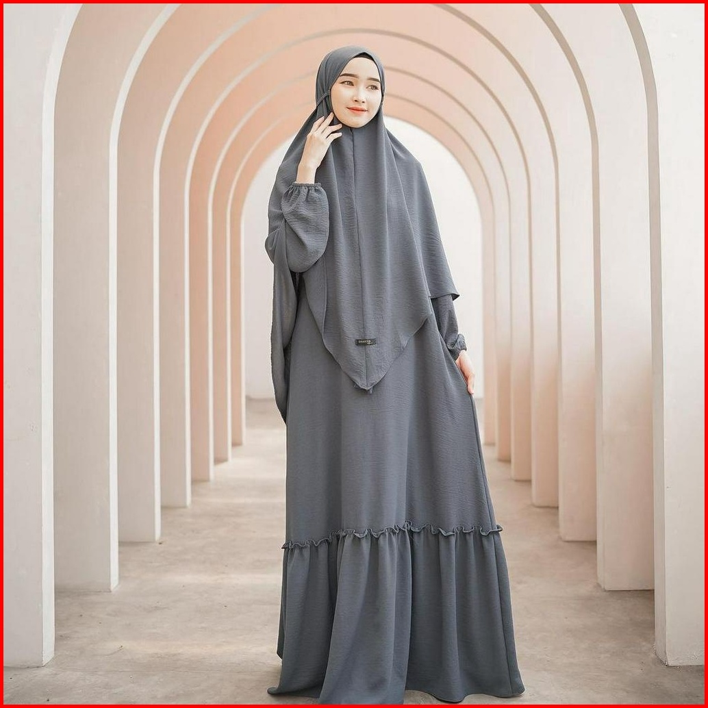 Gamis Cringkel Syakira Syar I Set Hijab Busui Resleting Depan Baju Muslimah Terlaris Gamis Jumbo Ukuran M L Xl Xxl Xxxl