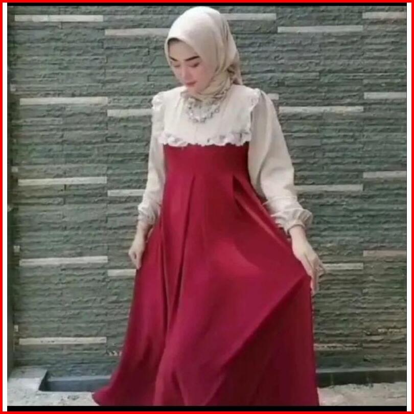 Alexsa Dress Maxi Busui Frendly Resleting Depan Fashion Elegan Terlaris Bahan Cringkle Airflow Premium Mix Embos Sultan