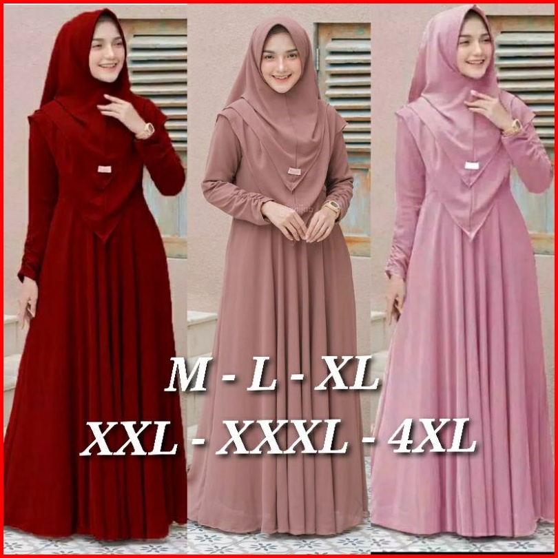 Gamis Syari Jumbo Jilbab 2 Layer Ukuran M L Xl Xxl Xxxl Set Murah Busui Polos Maxi Dress Gamis Pesta Terbaru Berkualitas