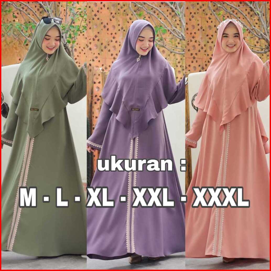 Gamis Amya Syari Mset Hijab Cringkle Airflow Premium Busui Reseleting Depan Fashionimah Baju Lebaran - Size M L Xl Xxl B