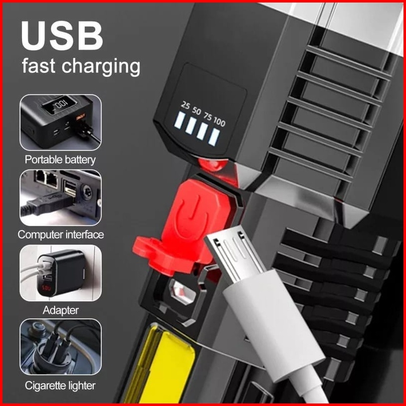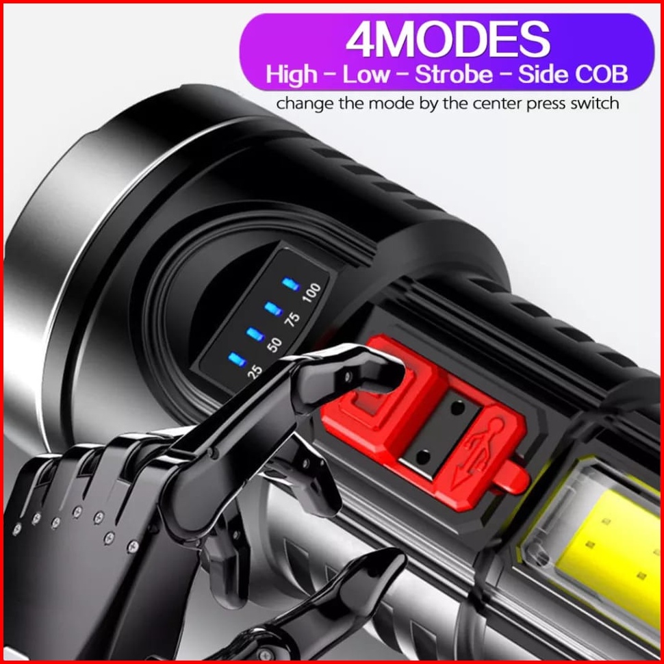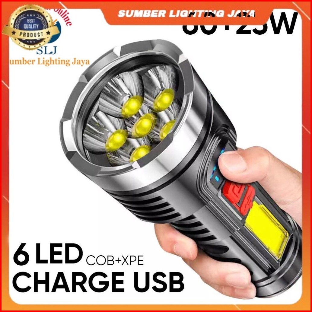 Senter Led 6 Mata 60 25w Super Terang Senter Cas Usb
