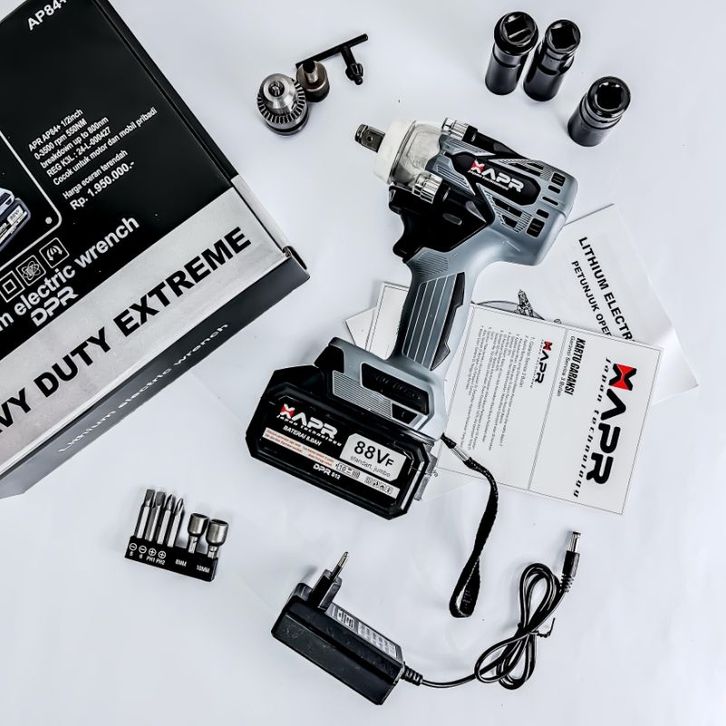 Bor Impact wrench Cordless Garansi Resmi 3Thn APR AP84+ 550nm Standart facelift 1 Baterai Fullset mesin pembuka baut rod