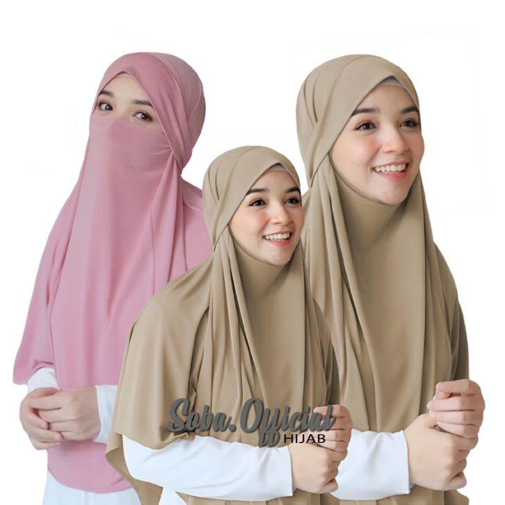Jilbab Hijab Kerudung Bergo Instan Syar'i French Khimar Arabian Niqob 2 In 1 Jersey Stylish adem Daily Acara Formal