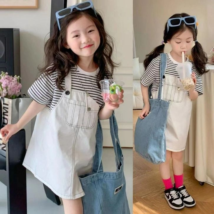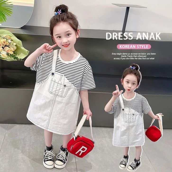 TERBARU DRESS NYATU ANAK PEREMPUAN DRESS GARIS-GARIS ANAK PEREMPAUN DRESS MANIS GAUN ANAK PEREMPUAN ROK ANAK