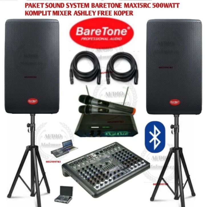 Paket sound Sistem Speaker Aktif Baretone MAX15RC 500 Watt Komplit Sama Mixer Ashley 8 Channel Gratis Koper/ Hardcase