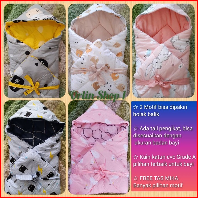 Selimut Topi Bayi Hoodie Motif Bisa Bolak Balik Ada Tas Mika Kado Lahiran Terbaik