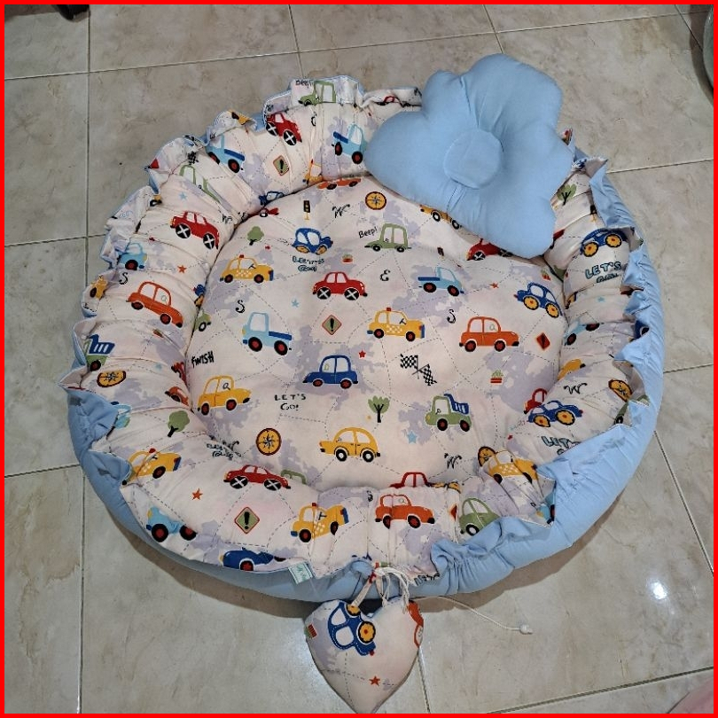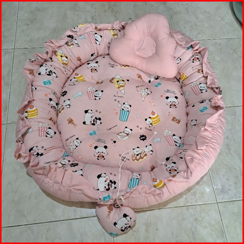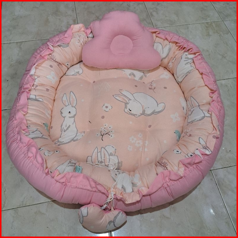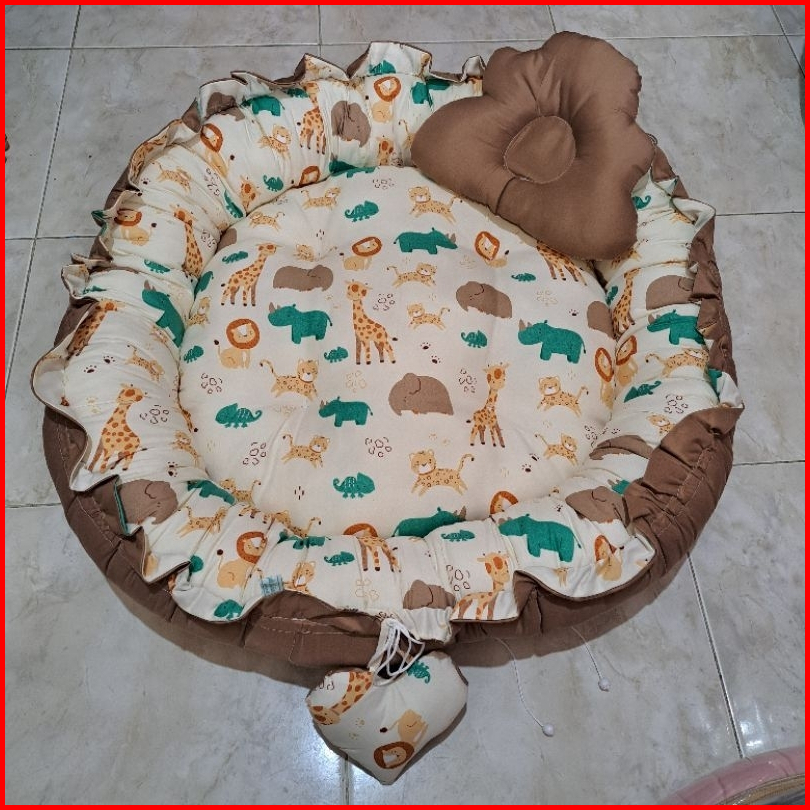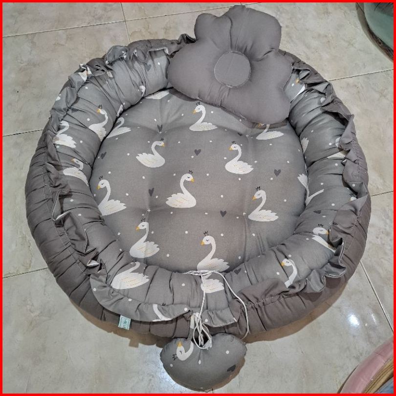 Round Baby Nest Kasur Bayi Bulat Bunga Babynest Kembang Kelambu Free Bantal Peang Mainan Ada Tasnya Mikro