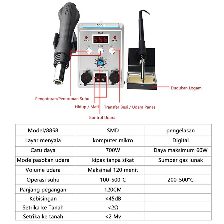 Nexor 700W Solder Blower Alat Las 8586 Digital Display Desoldering Heat Solder Air Gun Desoldering