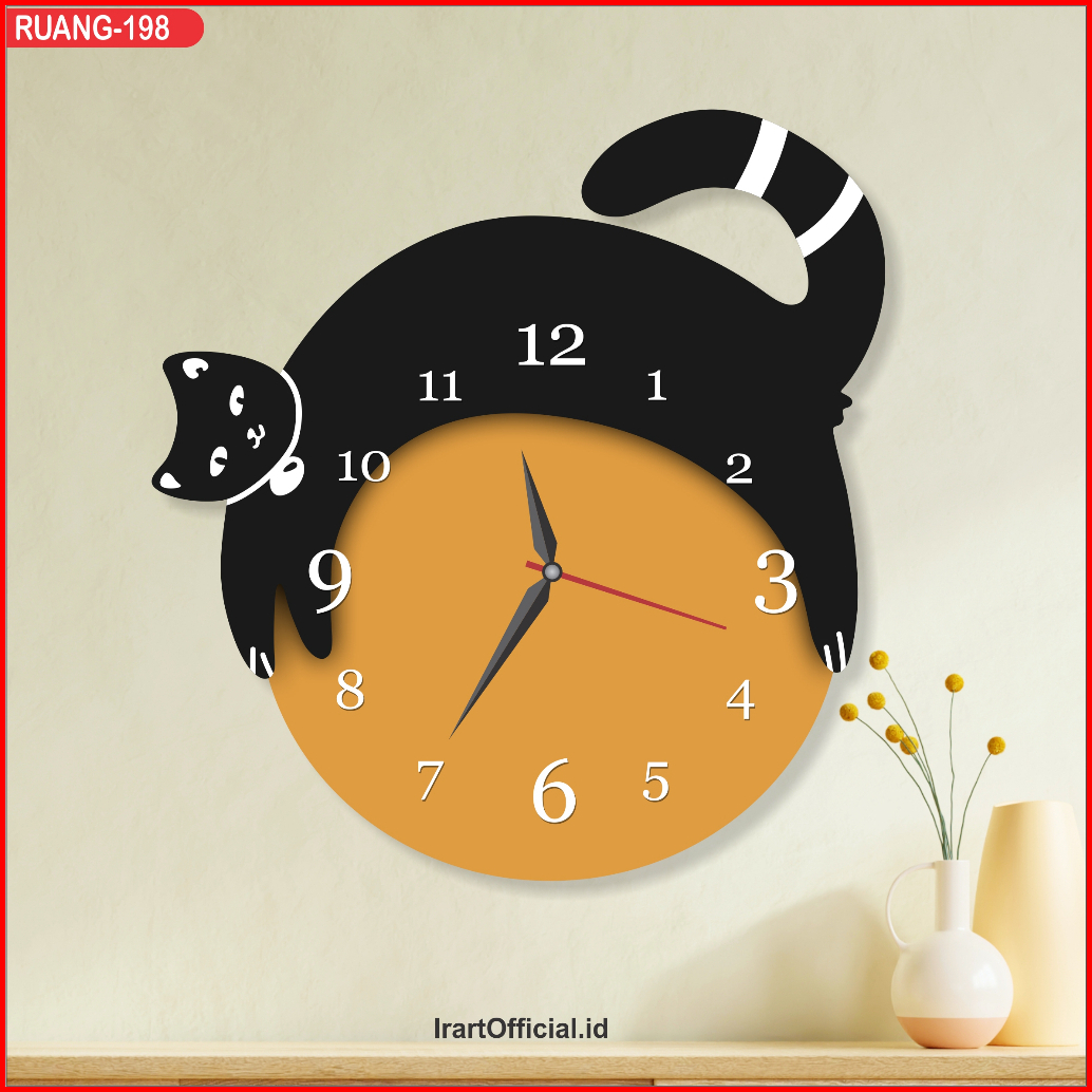 Rc - 181 Jam Dinding Ukir Sweet Home Kucing Hiasan Dingding Ruang Tamu Kamar Tidur Aesthetic