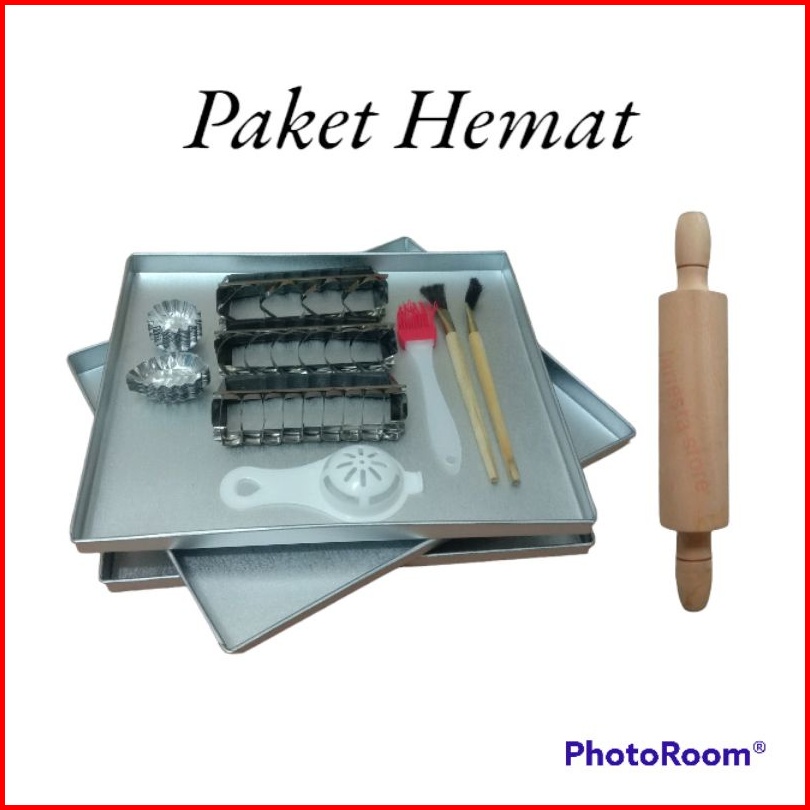 Paket Hemat 1 Set 3 Pcs Loyang Kue Kering 26 X 30cm Plus Bonus Cetakan Kue Kering Kastengel Sabit Love Kotak Dan Cetakan