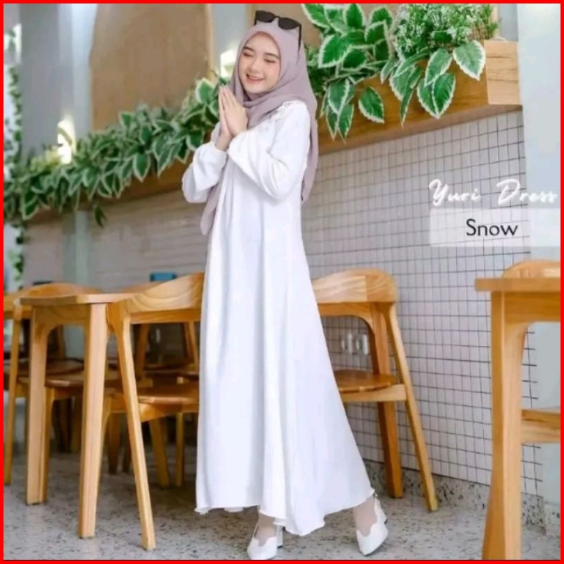 Gamis Crinkle Airflow Yuri Dress Maxy Gamis Remaja Putih Polos Size S M L Xl Gamis Dewasa Kondangan Fashion Muslim Wanit