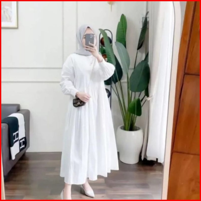 Gamis Crinkle Airflow Elita Midi Dress Gamis Putih Polos Size S M L Xl Gamis Remaja Terbaru Fashion Muslim Wanita Terkin