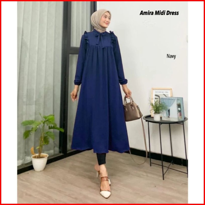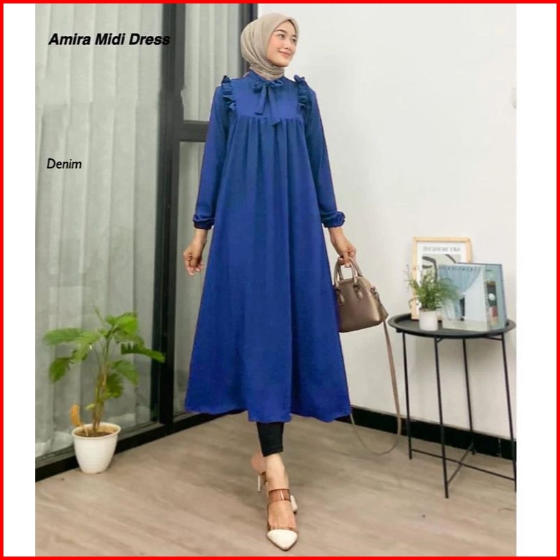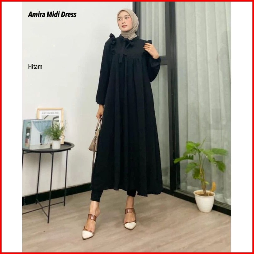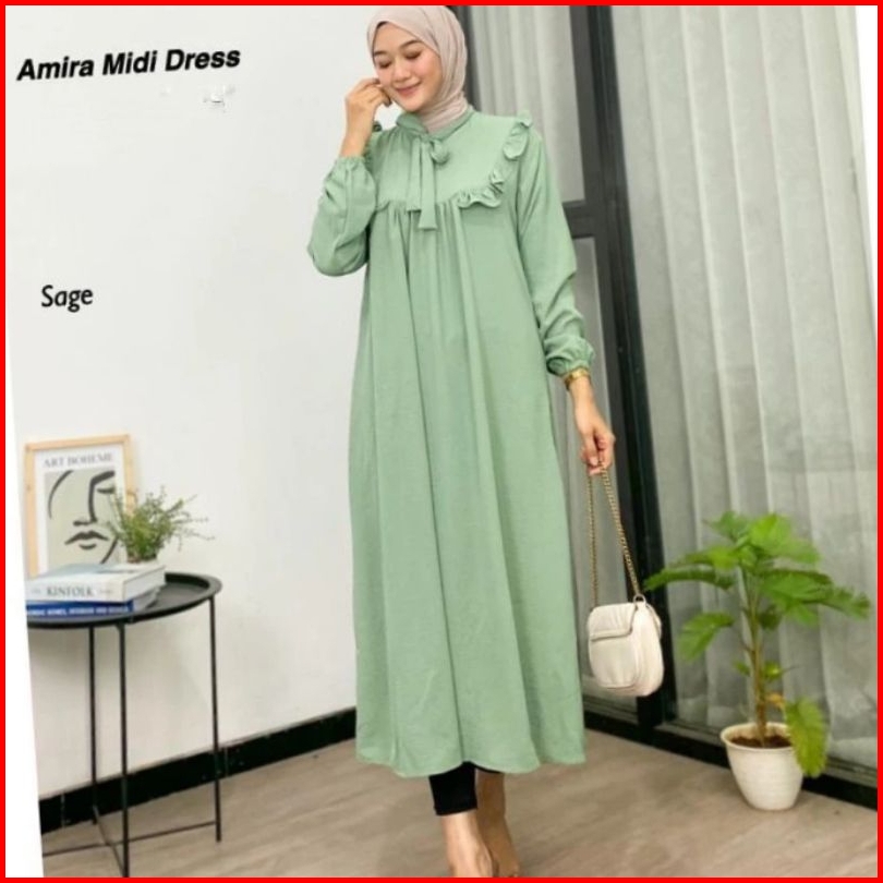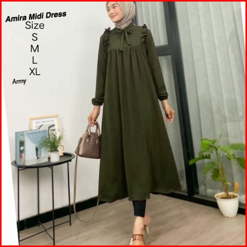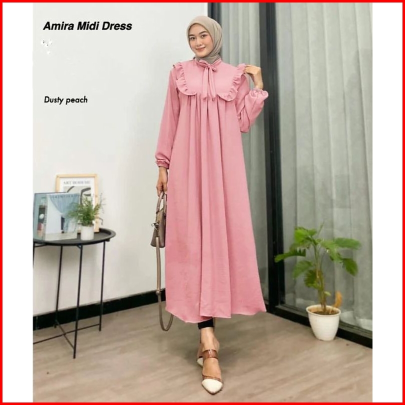Amira Midi Dress Crinkle Airflow Gamis Remaja Dewasa Terbaru Pakaian Muslim Wanita Terlaris Fashion Wanita