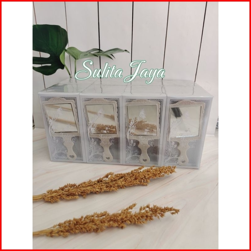 Isi 50 Pcs - Souvenir Pernikahan Kaca Kotak Putih Kemas Mika Motif