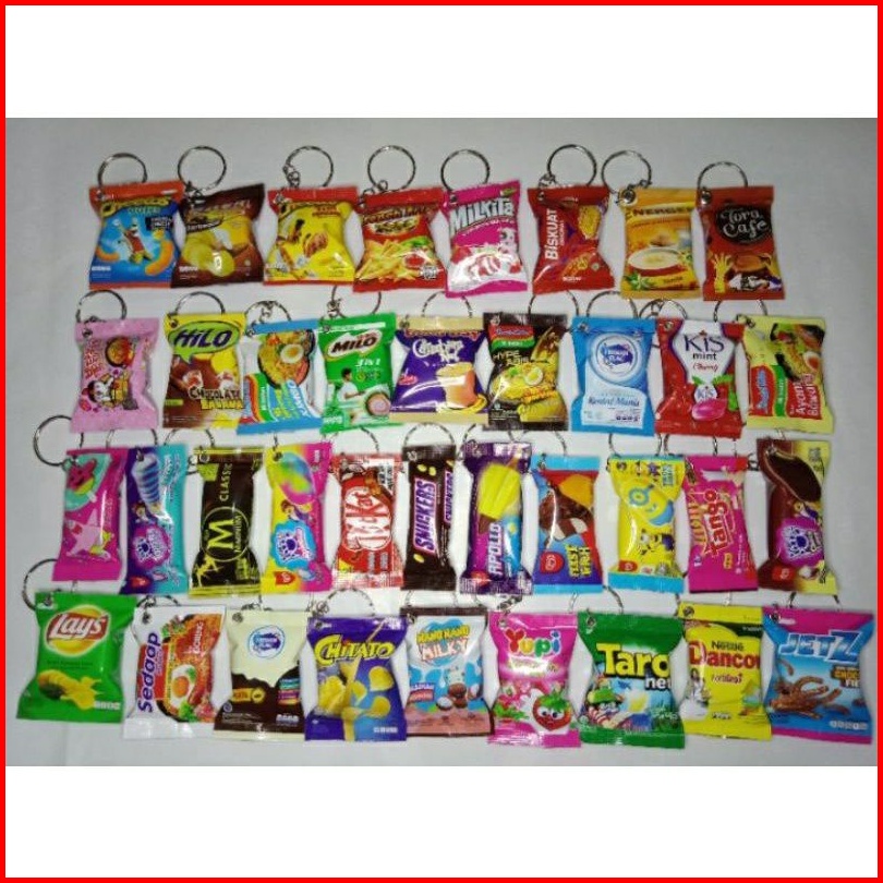 Isi 50 Gantungan Kunci Snack Miniatur Hadiah Pernikahan Oleh Oleh Souvenir Ulang Tahun