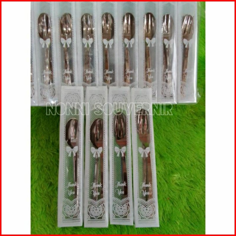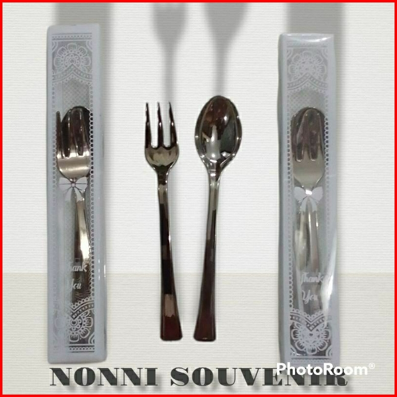 Isi 50 Pasang Souvenir Sendok Garpu Silver Kemasan Mika Cantik