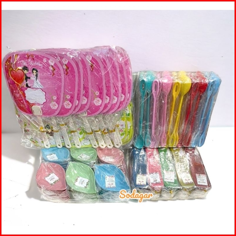 Isi 300 Pcs Paket Hemat Souvenir Pernikahan Paket Hemat Sovenir Kipas Wedding Souvenir Sisir Sendok Mangkok Daun