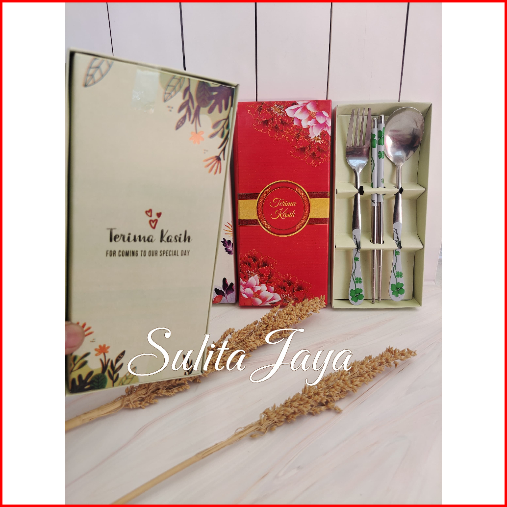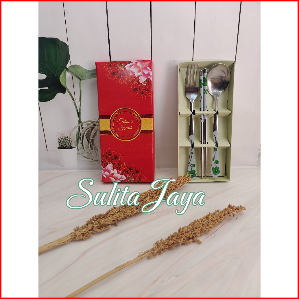Isi 20 Pcs - Souvenir Pernikahan Sendok Garpu Sumpit Stainlis Sgs Sakura Kemasan Full Box