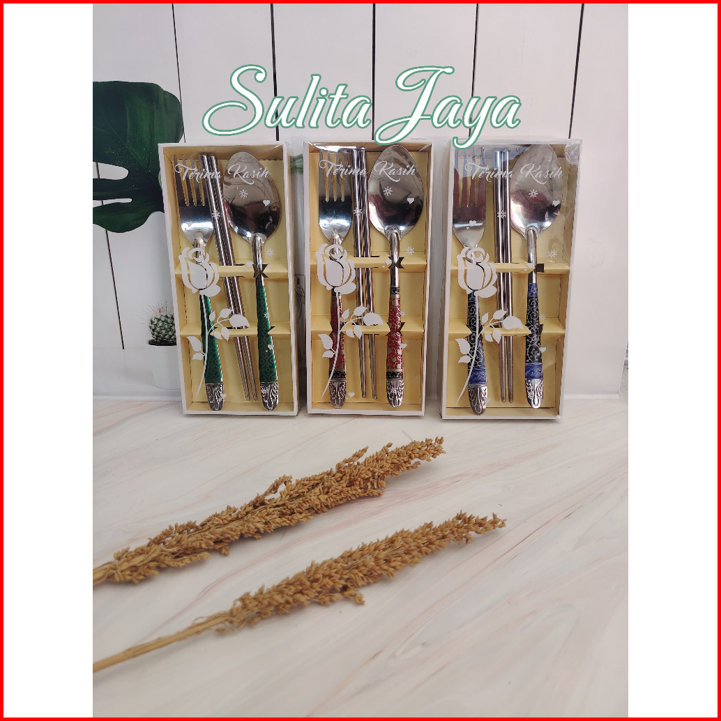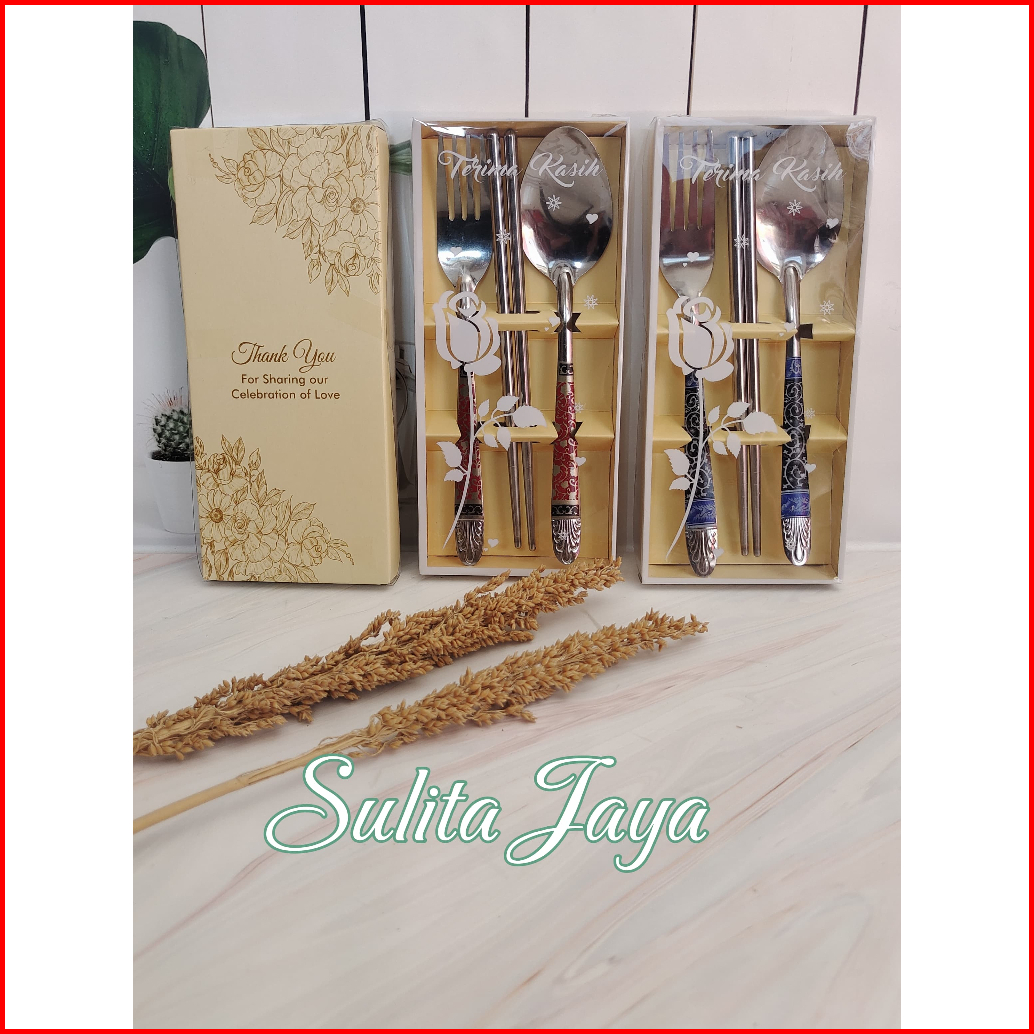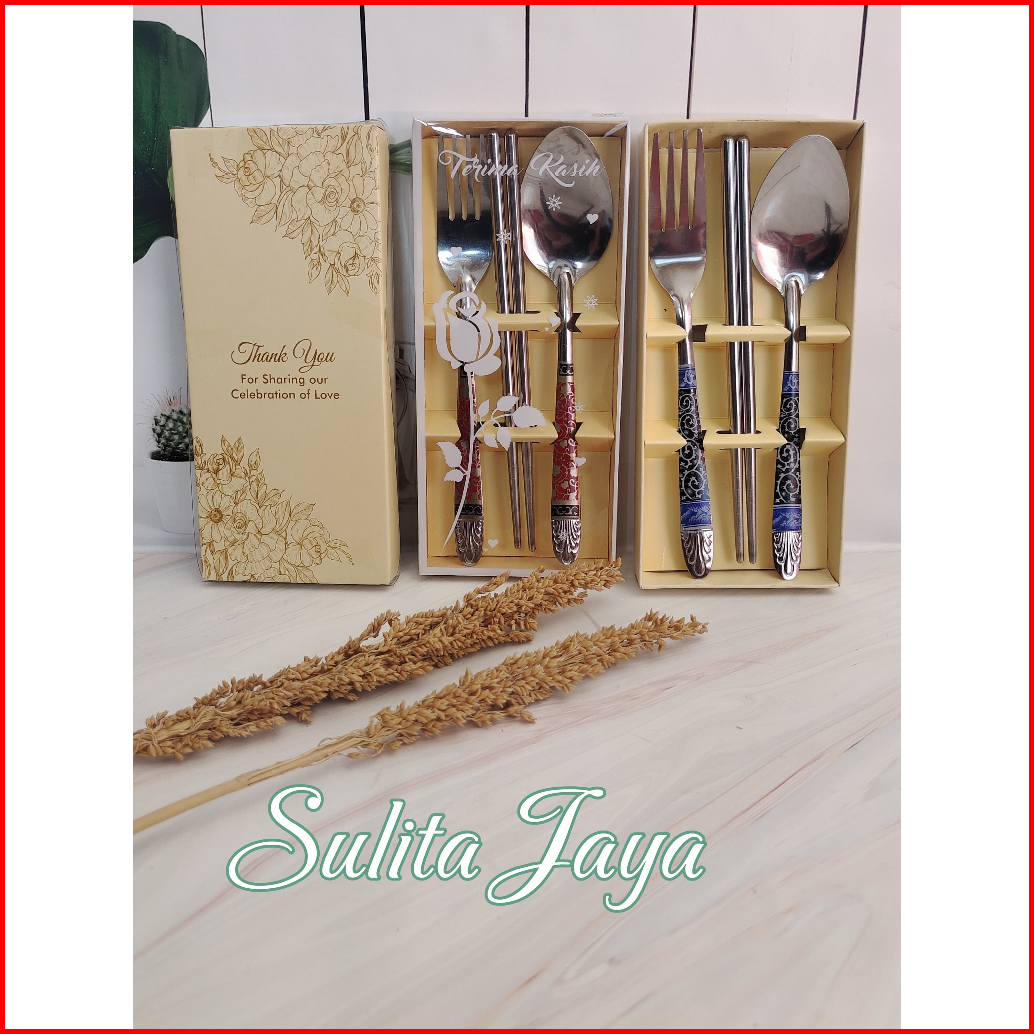 Isi 20 Pcs - Souvenir Pernikahan Sendok Garpu Sumpit Motif Batik Sgs Kemas Box Mika Motif