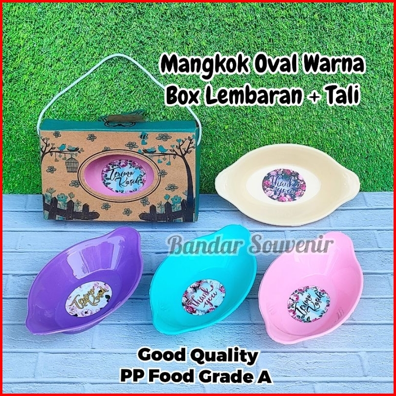 50 Pcs Souvenir Mangkok Tebal Perahu Oval Warna Box Lembaran Tali Gratis Kartu Thanks