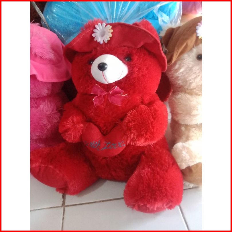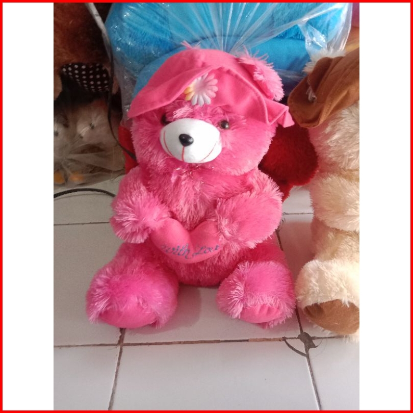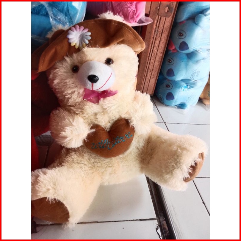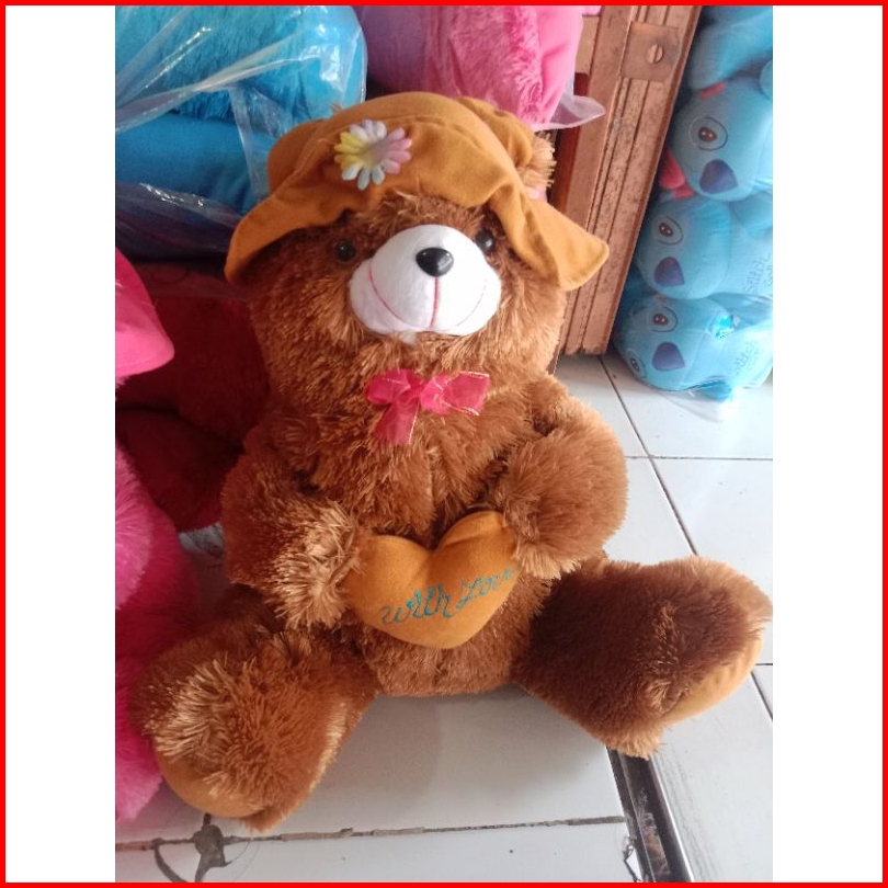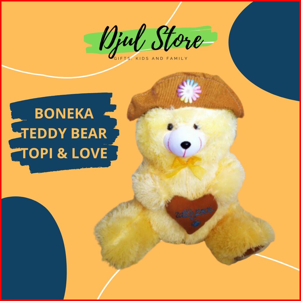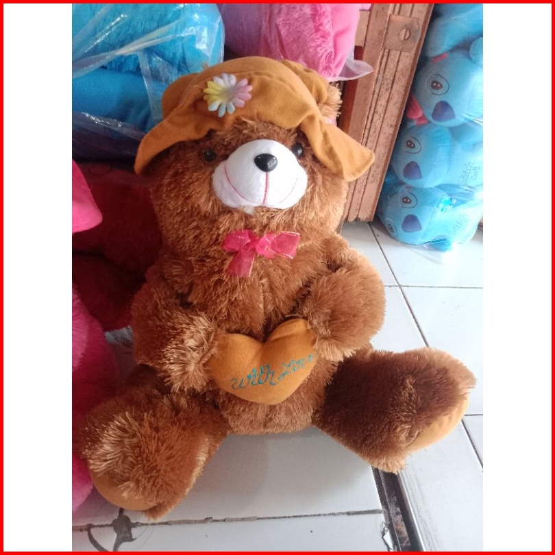Boneka Beruang Teddy Bear Topi Love Lucu