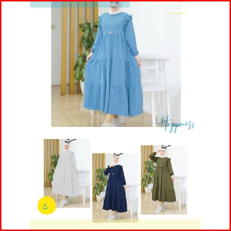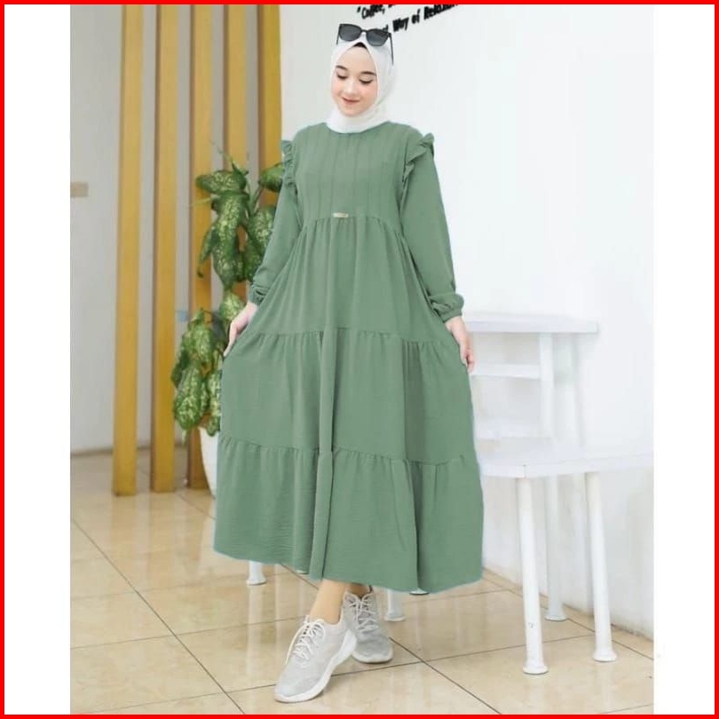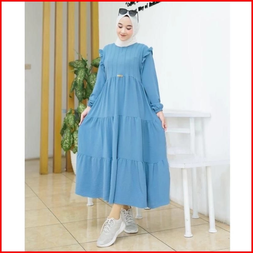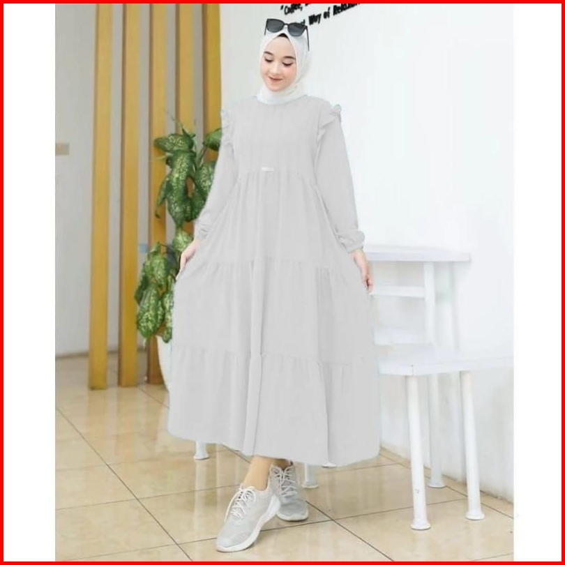 Midi Dress Crinkle Airflow Terlaris Amelia Dress Korean Style Gamis Putih Polos Size S M L Xl Fashion Muslim Wanita