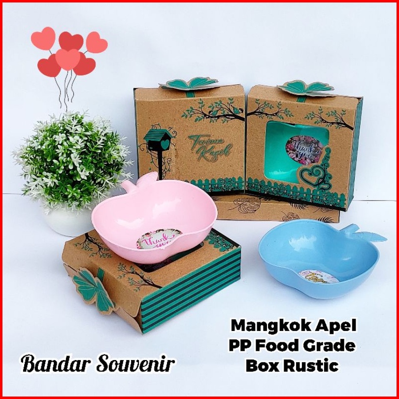 Isi 50 Pcs Souvenir Mangkok Apel Tali Box Rustik Lembaran Gratis Kartu Thanks