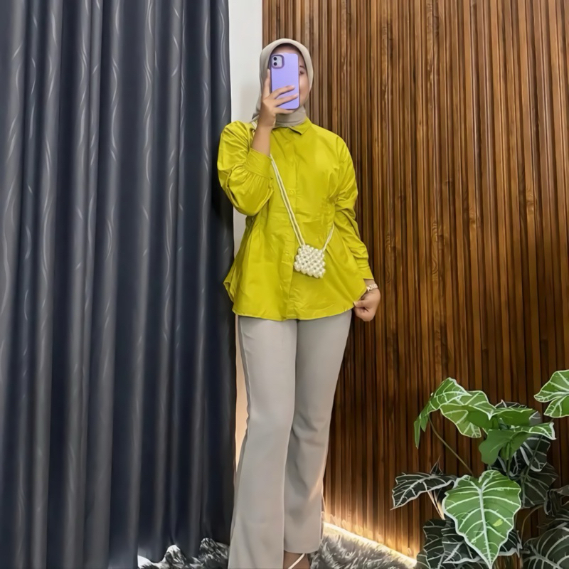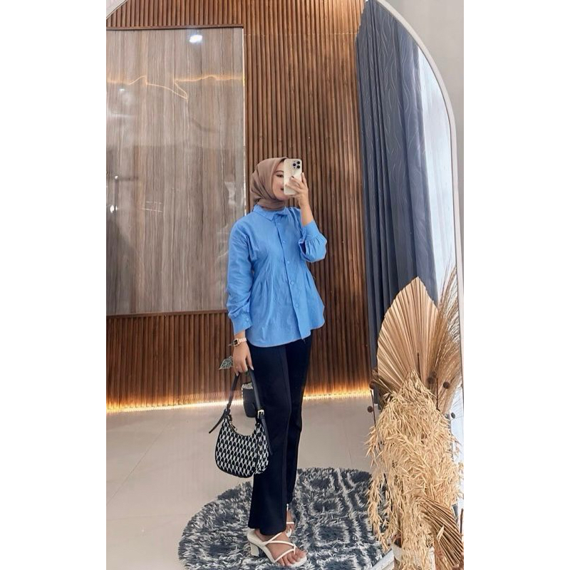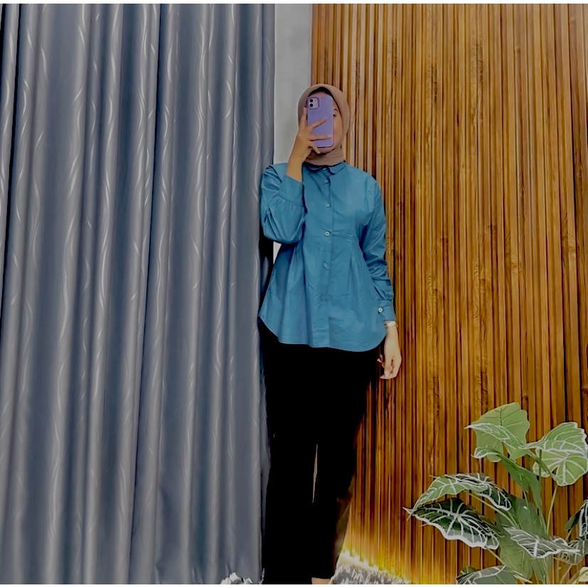 (Gratis Ongkir) Kemeja Luna Top Long Slevee Matt Catton Premium LD 105 dan 115cm_ Kemeja Press Body_ Kemeja