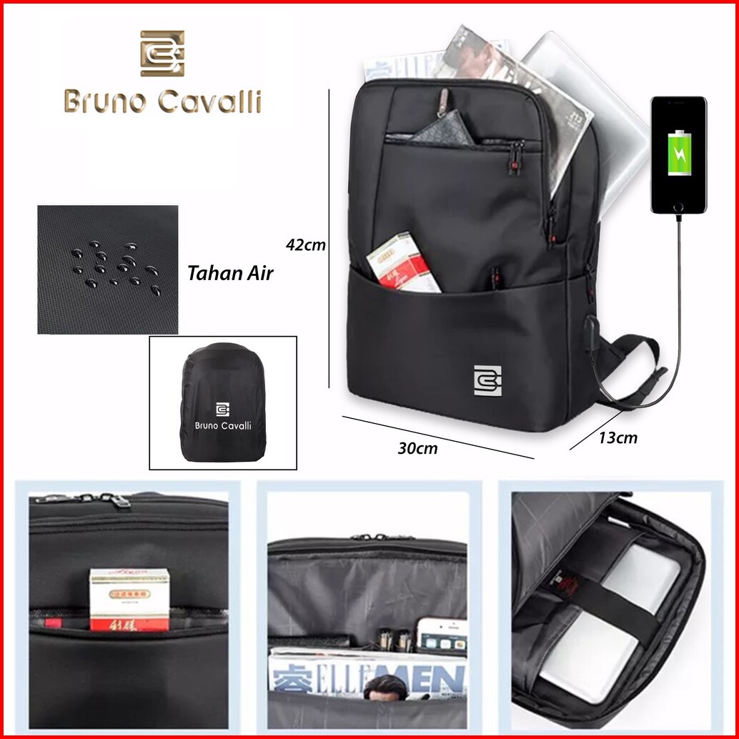 Bruno Cavalli Mii 5 16l Backpack Usb Bonus Rain Cover Water Resistant - Tas Ransel Pria 8500
