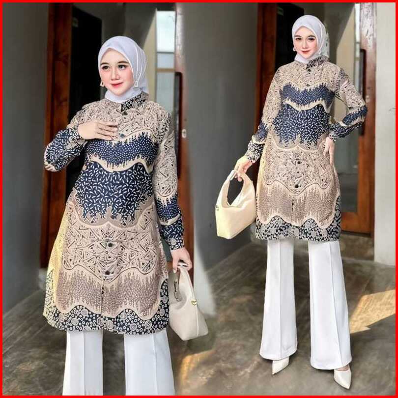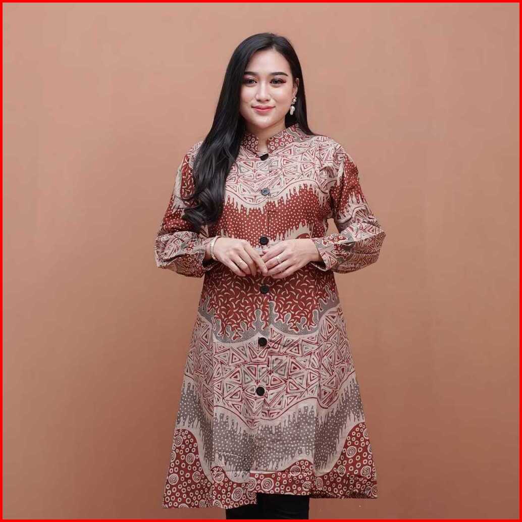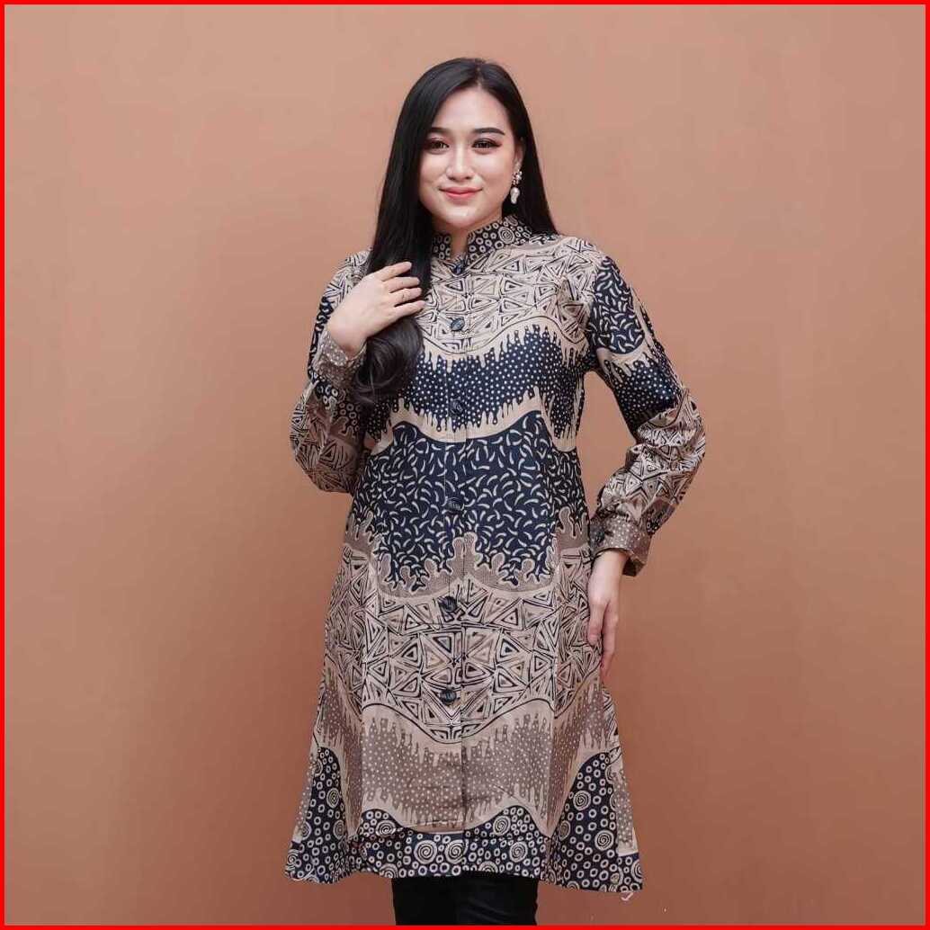 Atasan Batik Tunik Wanita Modern Baju Batik Wanita Kerja Seragam Kantor Style Kekinian