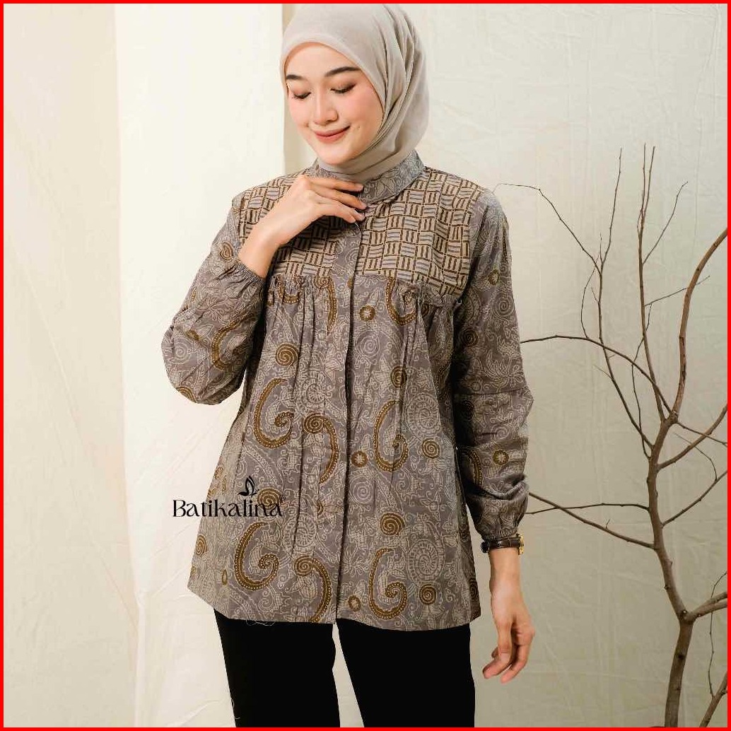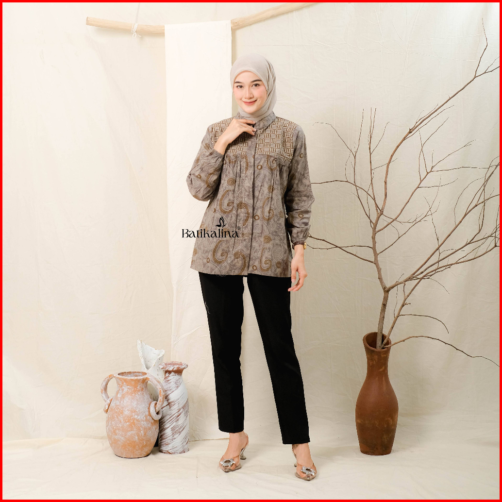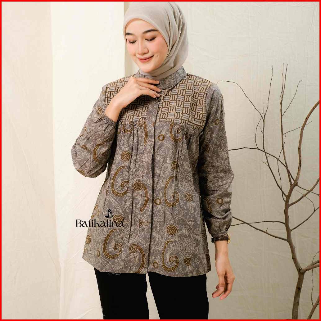 Baju Batik Wanita Modern Atasan Blouse Batik Kerja Kantor Wanita