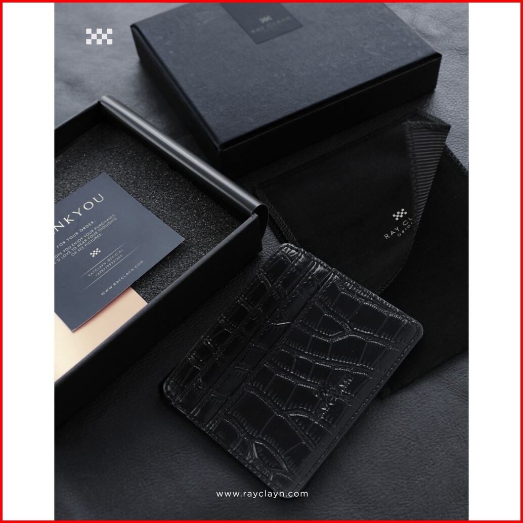 Ray Cl Yn - Cliff Card Holder Black Croco Dompet Kartu Dompet Kartu Kulit Card Holder Wanita Dan Pria Cardholder