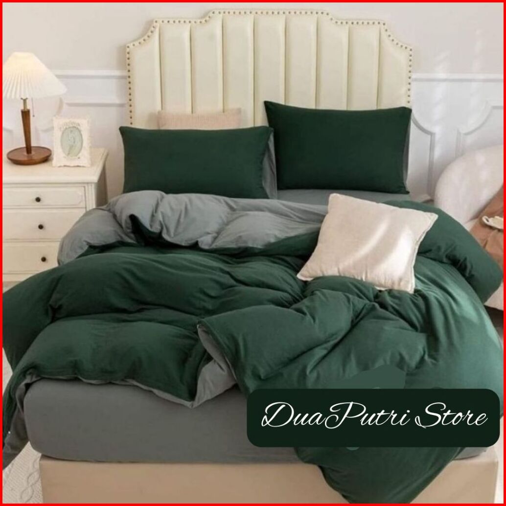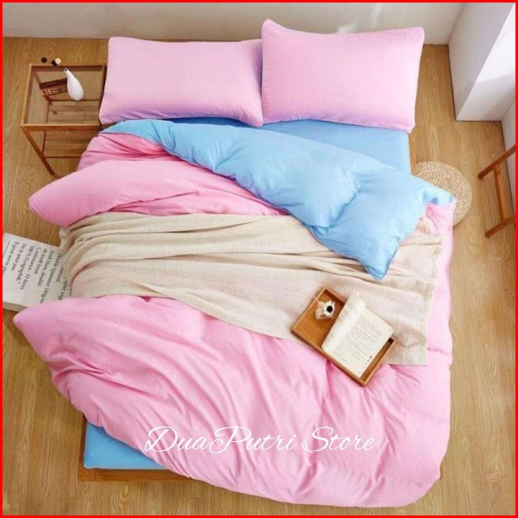 Bedcover Set Seprei Polos Kombinasi Dua Warna Ukuran 180x200 160x200 120x200 Bedcover Polos Aestetik