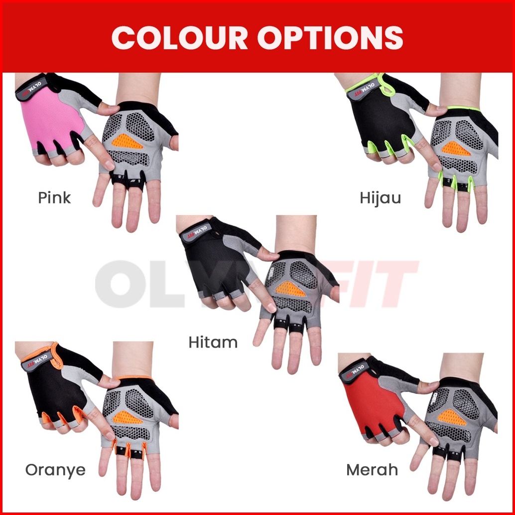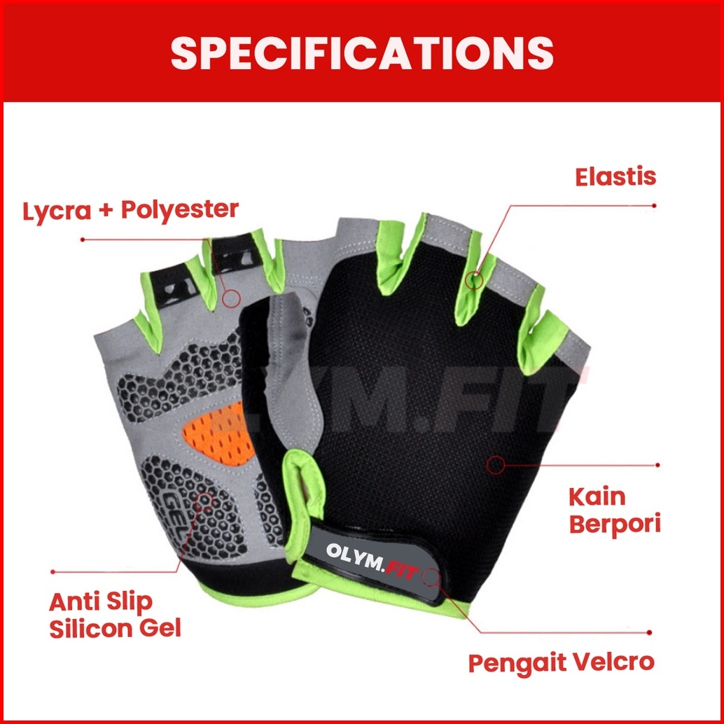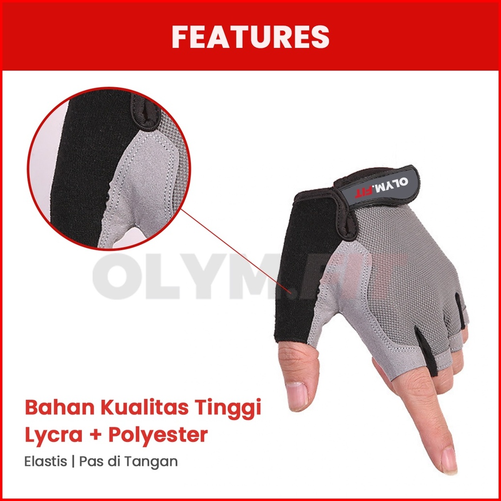 Olym.fit Sarung Tangan Olahraga Setengah Jari Fitness Sepeda Gowes Mtb Silicone Gel Sport Gym Gloves Anti Slip S M L Xl