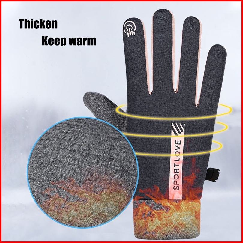Sportlove Tebal Sarung Tangan Musim Semi Anti Air Layar Sentuh Luar Ruangan Tahan Angin Olahraga Lari Bersepeda