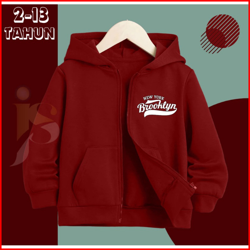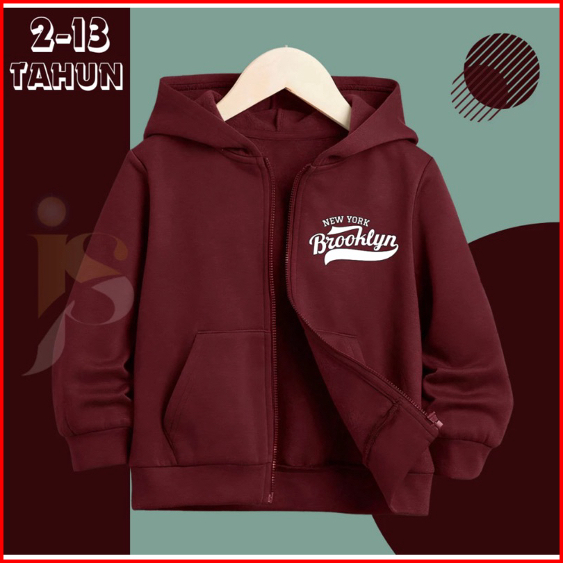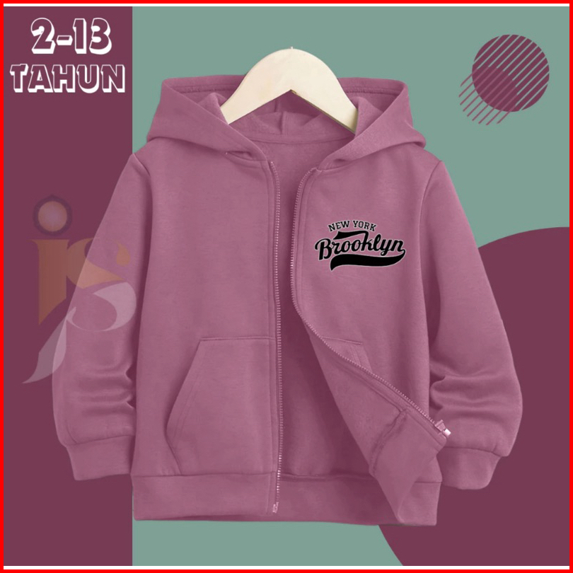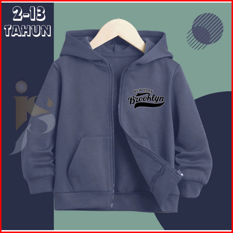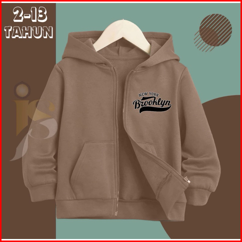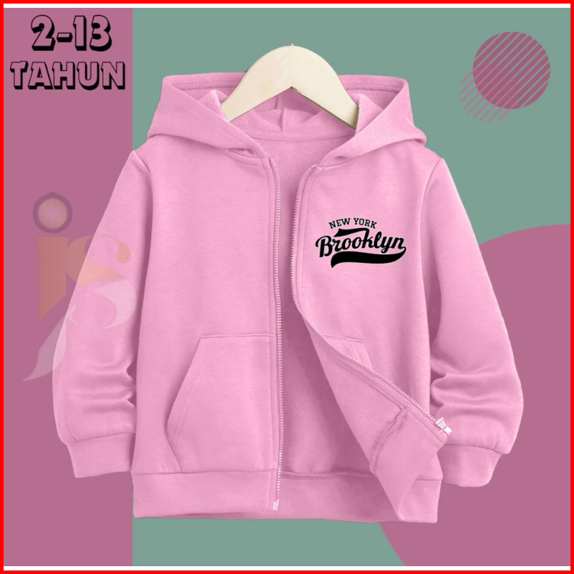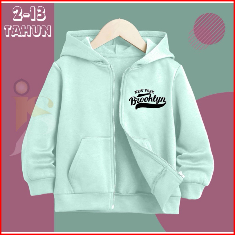 Zipper Hoodie Anak Brooklyn Newyork Resleting Anak Erigo Cewek Cowok Unisex Usia 2-13 Tahun Laki Laki Terbaru 2024
