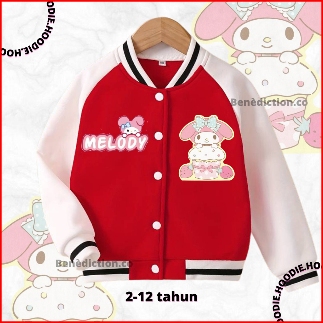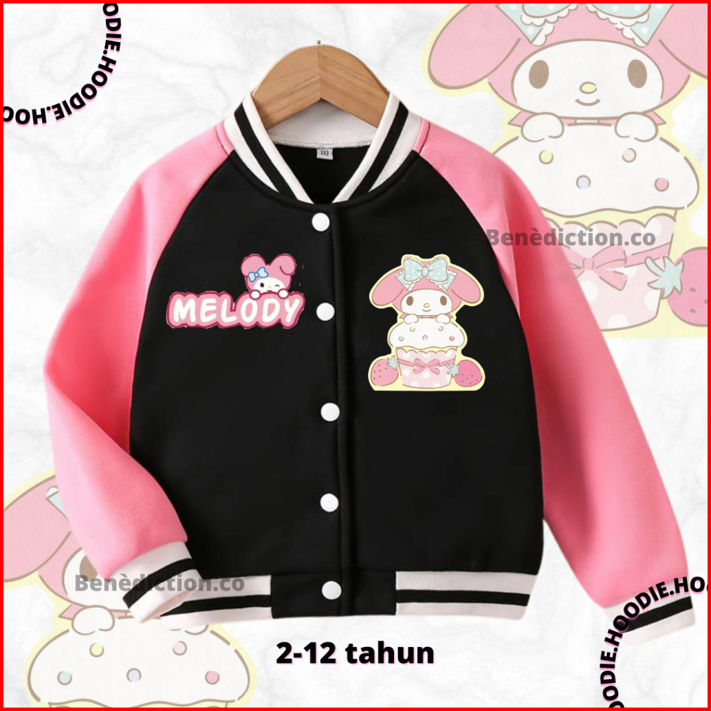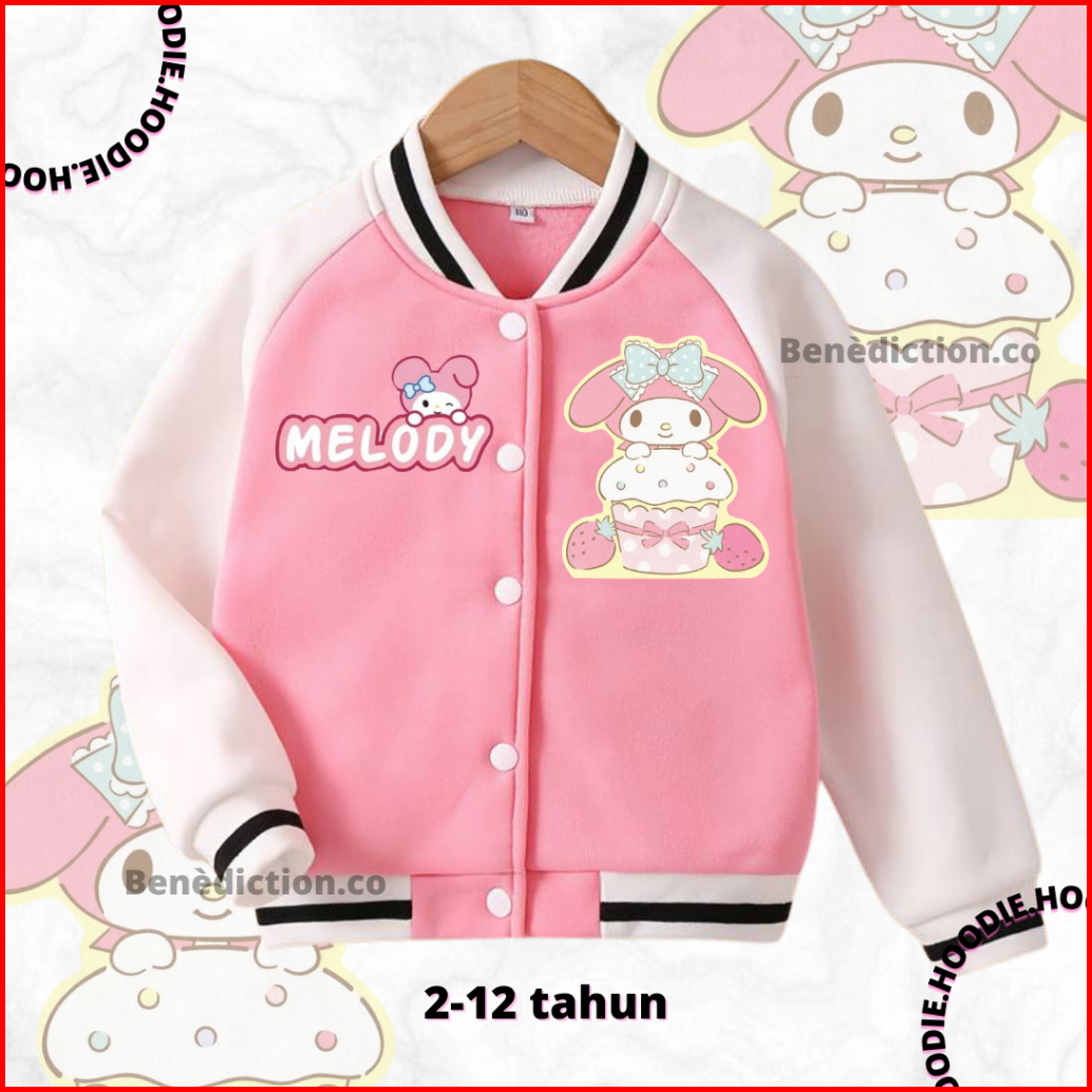 Jaket Varsity Anak Perempuan My Melody Umur 2 3 4 5 6 7 8 9 10 11 12 Tahun Jaket Baseball Anak Cewe Unisex Hoodie Swaete